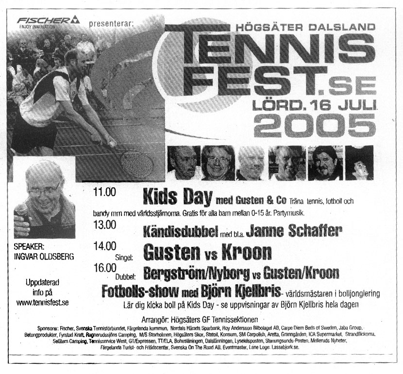 Inför 2005 års upplaga fick Ahlbin även med Peter Nyborg på startfältet. Det var nära att både Wilander och Björkman kom med- men sponsorerna var för få i den lilla dalsländska byn. Ahlbin ringde Janne Schaffer som kunde vara med och han övertalade i sin tur Klasse Möllberg. Även Lasse Åberg var på gång, men kunde inte sig från Gotland till Högsäter utan körkort. Möllberg var nära att hyra en helikopter och hämta honom. Även radioprofilen Bente Hjelm hängde på. Det blev både livemusik och spex och restaurangtält i Högsäter under eventet. Kroon blev den som utmanade Gusten, men han fick se sig besegrad av den forne världstian. Vädrets makter detta år gjorde dock att eventet inte utvecklades i den takt de hade önskat. Så mycket jobb de lade ner, men vad hjälper det när regnet öste ner en timme efter att eventet dragit igång.