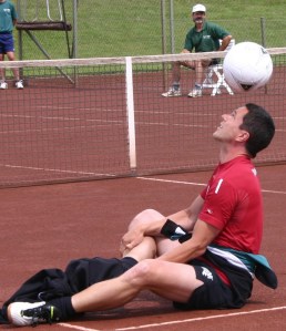 Hur gick då singelmatchen? Magnus Gustafsson van över Jan Apell. Det var ingen uppvisningsmatch längre. Det var blodigt allvar på gruset fortsätter berättar Ahlbin vidare.