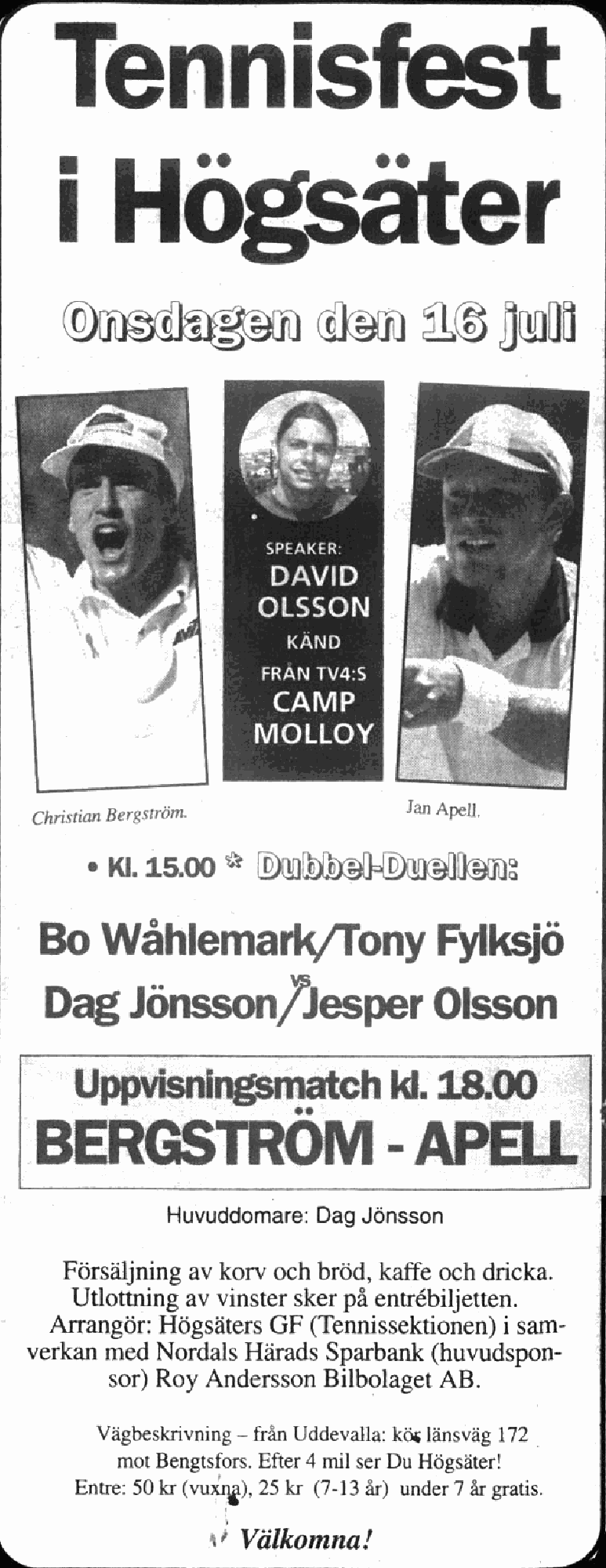Ahlbin hittade ett hus till honom och hans familj och som tack för hjälpen så ställde Christian upp i Lysekils tennisvecka där han åkte ut i andra matchen mot Johan Brunström. Det är här historien tar fart kan man säga. Ahlbin fick med Christian bergström på att spela en uppvisningsmatch på tennisanläggningen i Högsäter och Christian fick själv välja motspelare. Som motspelare valde Bergström dubbelspecialisten och Davis Cup hjälten Jan Apell. Tennisklubben i Högsäter tände på alla cylindrar och backade upp med funktionärer, linjedomare och bollkallar.