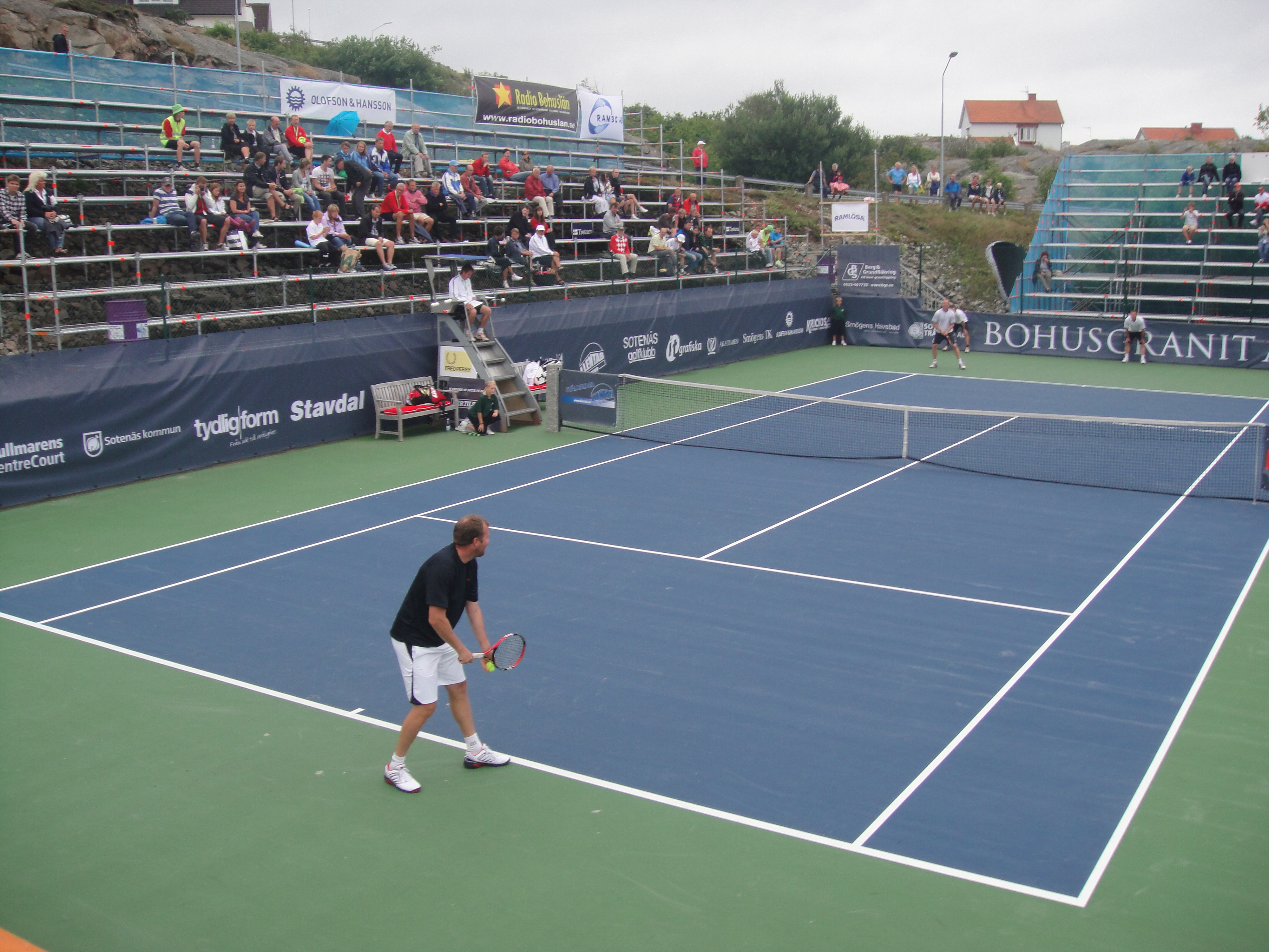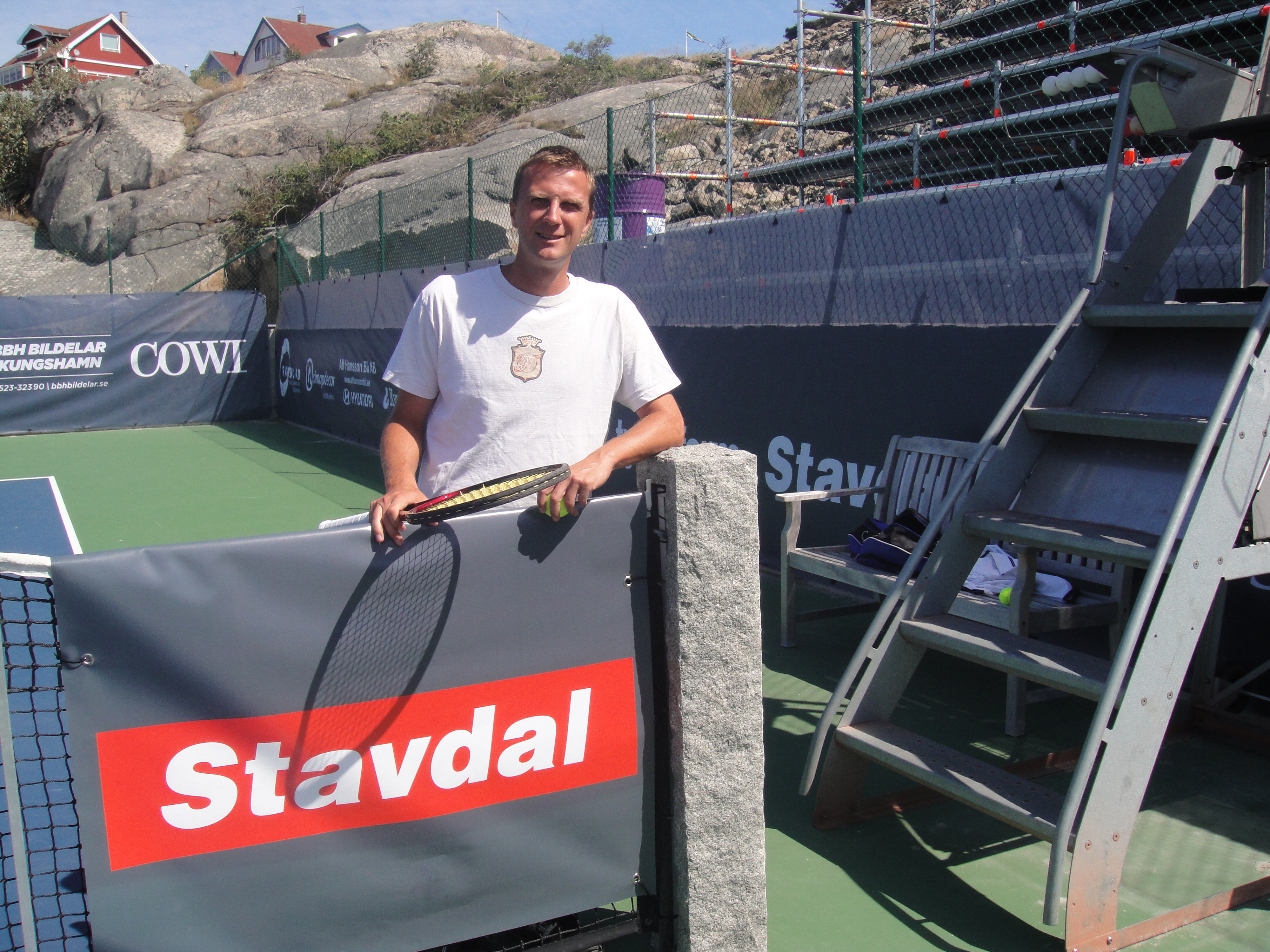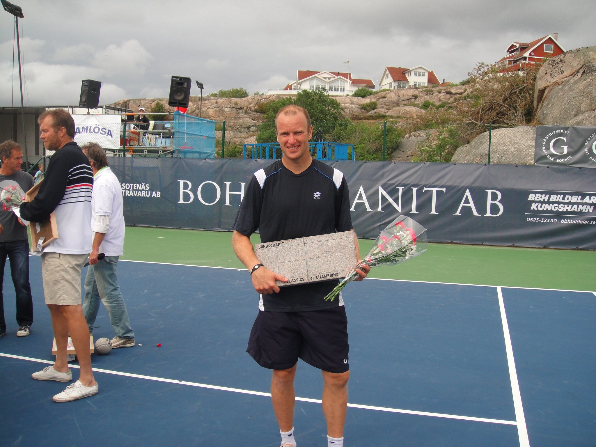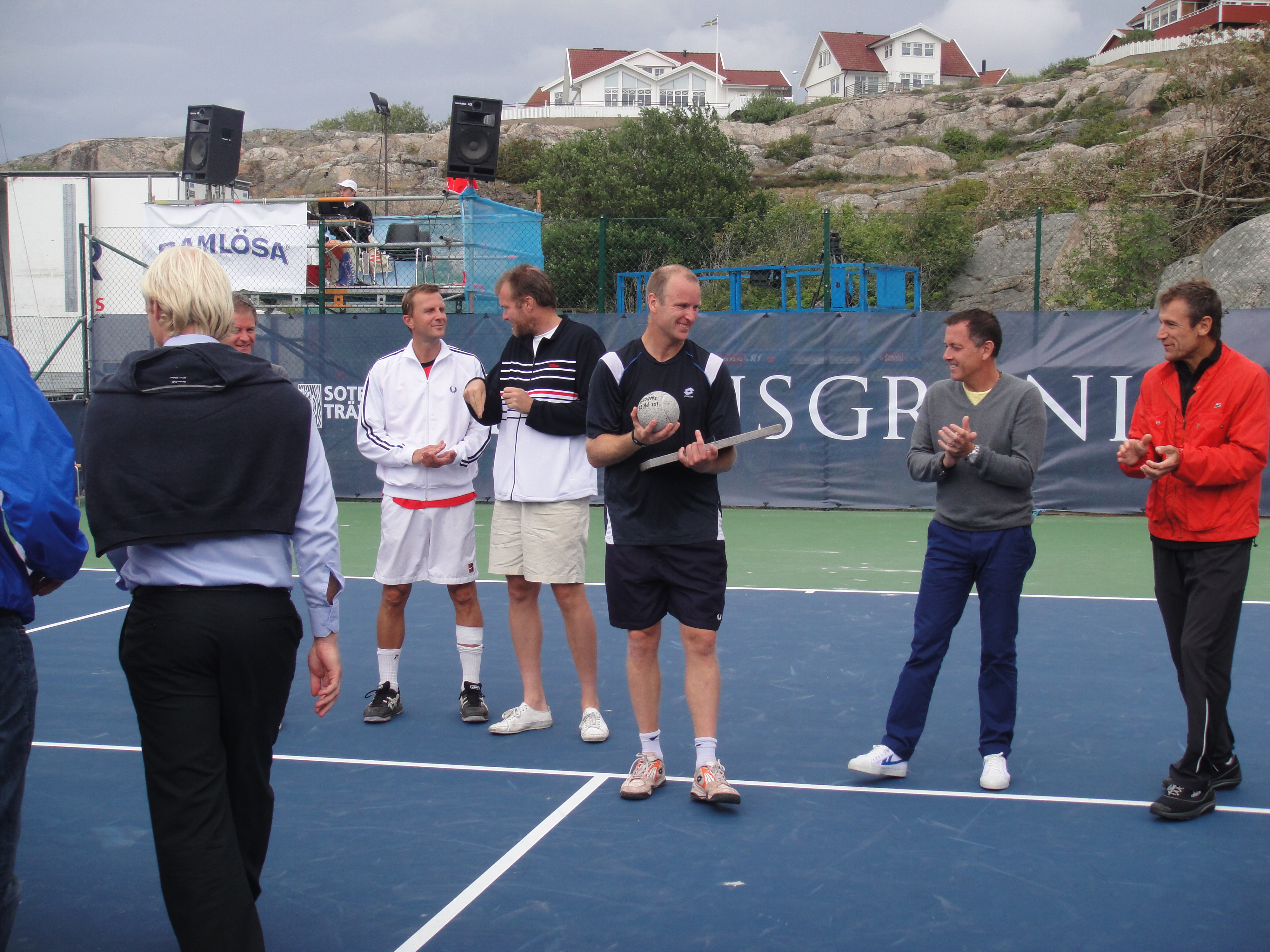 2011 så var Classics flyttat till Smögen från Lysekil. Det behövde väl röra på sig lite. Fast jag saknade Lysekil. Smögen är otroligt vackert och banan där ligger intill berget och inomhushallen. Sen så är det hardcourt. Lite lättare att jobba med vid regn om inte annat. Jag var där som banchef. Det var en del regn, men med fantastiska linjemän och kvinnor så lyckades vi ro det i hamn. Jag sa det då och jag säger det igen, Ni från Hunnebostrand, Kungshamn och Smögen m.m. gjorde ett kanonjobb för att få ordning på banan. Stort tack för hjälpen. Vi hade gummiskrapor som vi puttade undan vattnet med. Det fungerade jättebra.