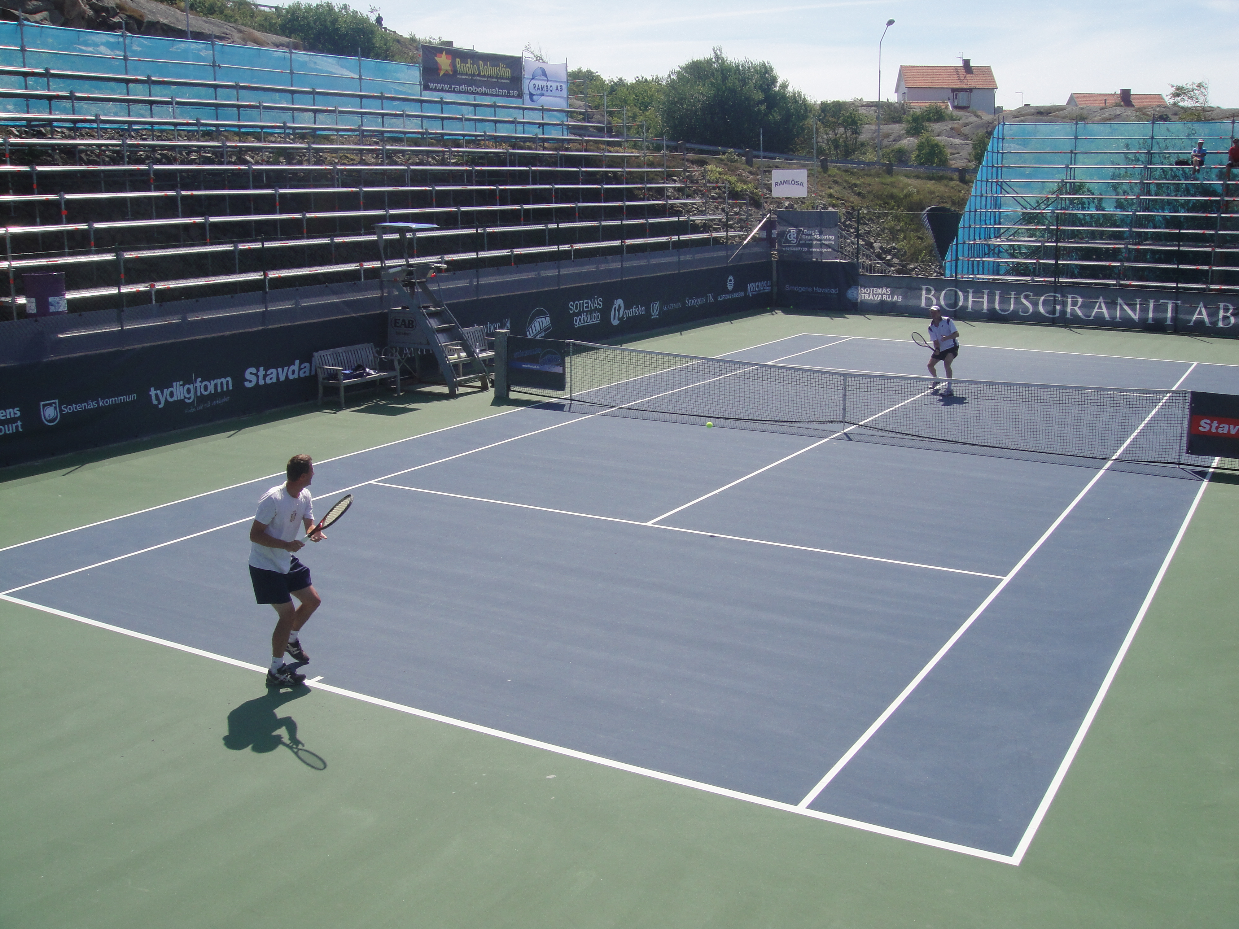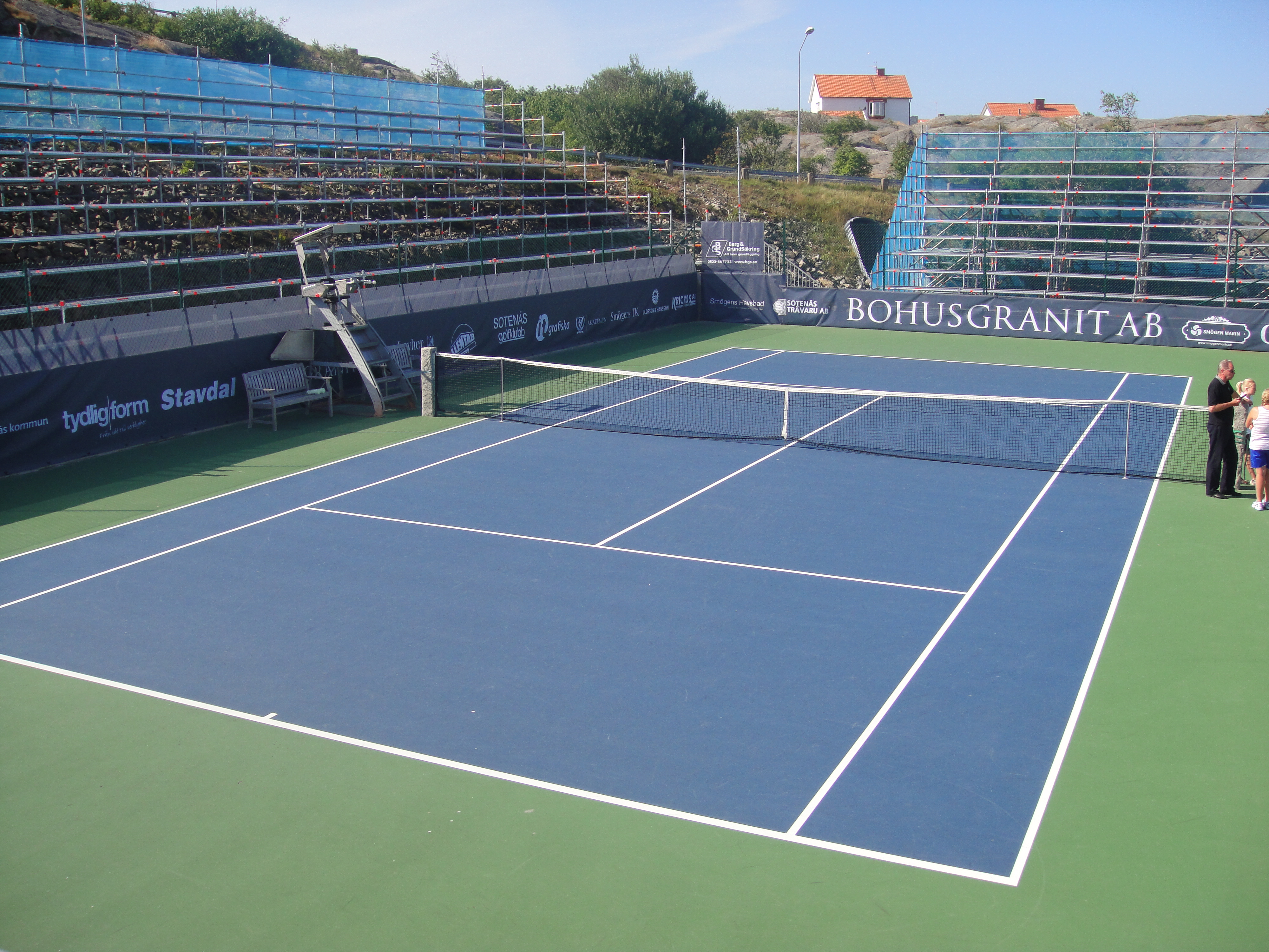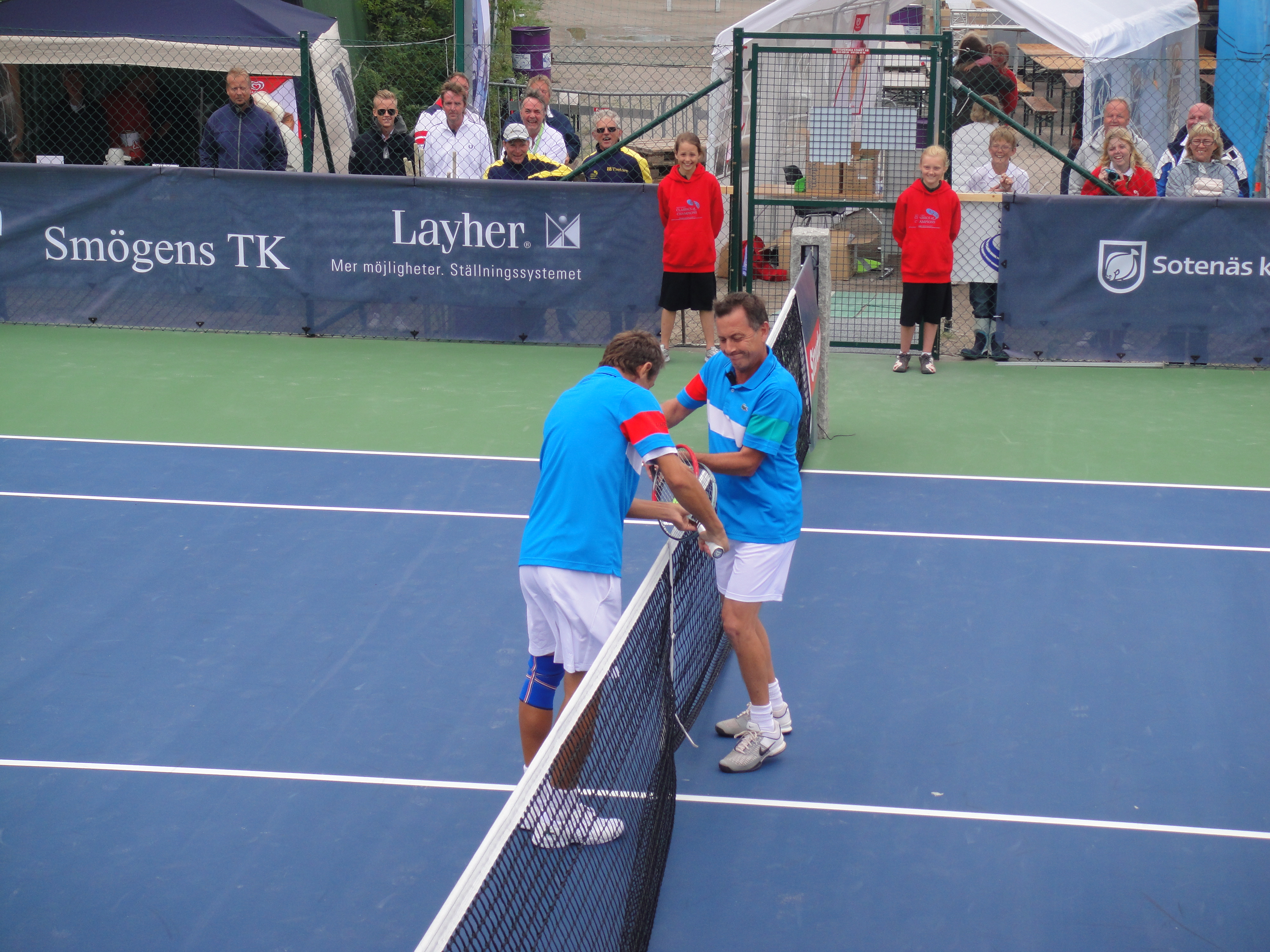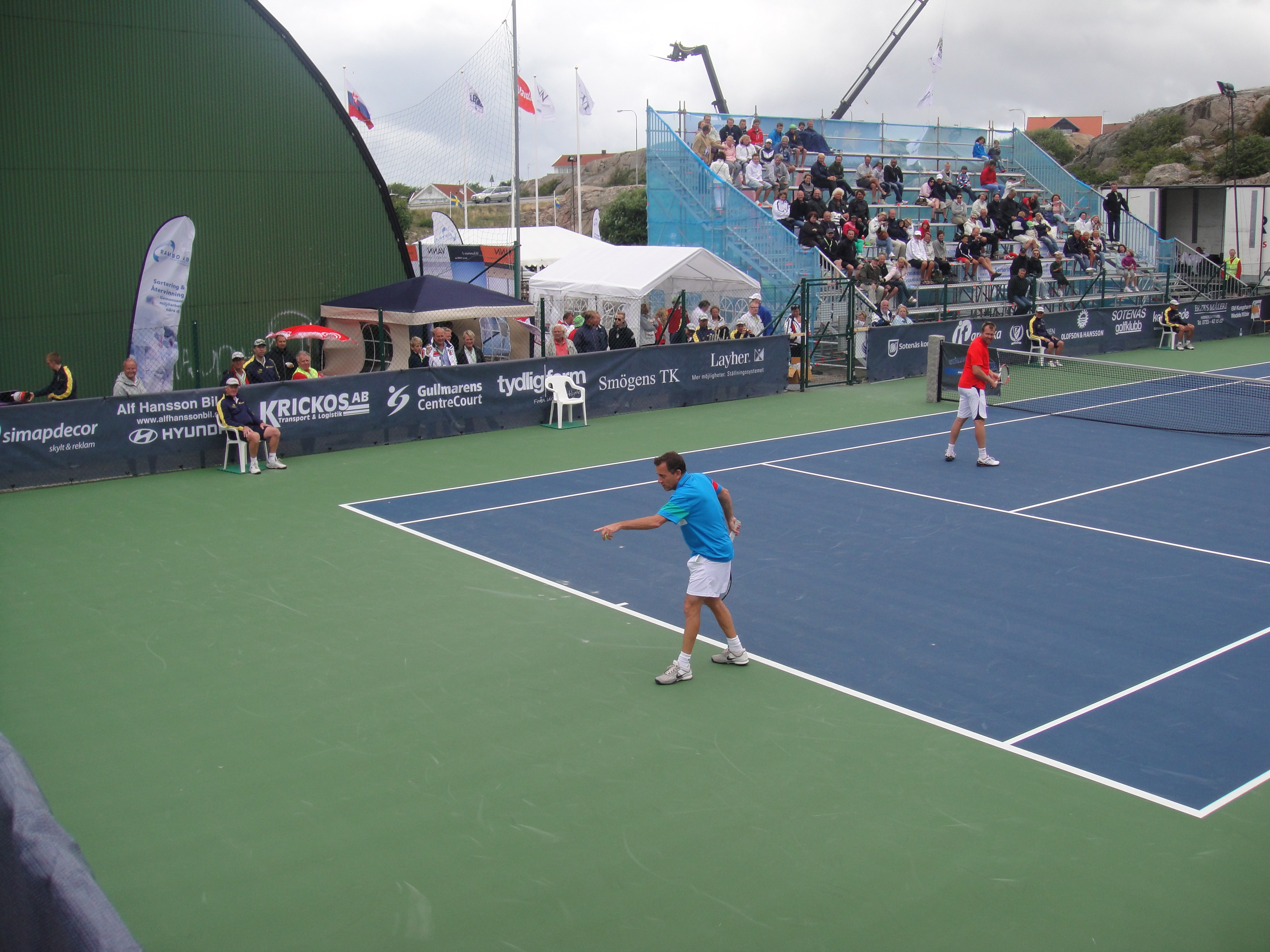 2011 så var Classics flyttat till Smögen från Lysekil. Det behövde väl röra på sig lite. Fast jag saknade Lysekil. Smögen är otroligt vackert och banan där ligger intill berget och inomhushallen. Sen så är det hardcourt. Lite lättare att jobba med vid regn om inte annat. Jag var där som banchef. Det var en del regn, men med fantastiska linjemän och kvinnor så lyckades vi ro det i hamn. Jag sa det då och jag säger det igen, Ni från Hunnebostrand, Kungshamn och Smögen m.m. gjorde ett kanonjobb för att få ordning på banan. Stort tack för hjälpen. Vi hade gummiskrapor som vi puttade undan vattnet med. Det fungerade jättebra.