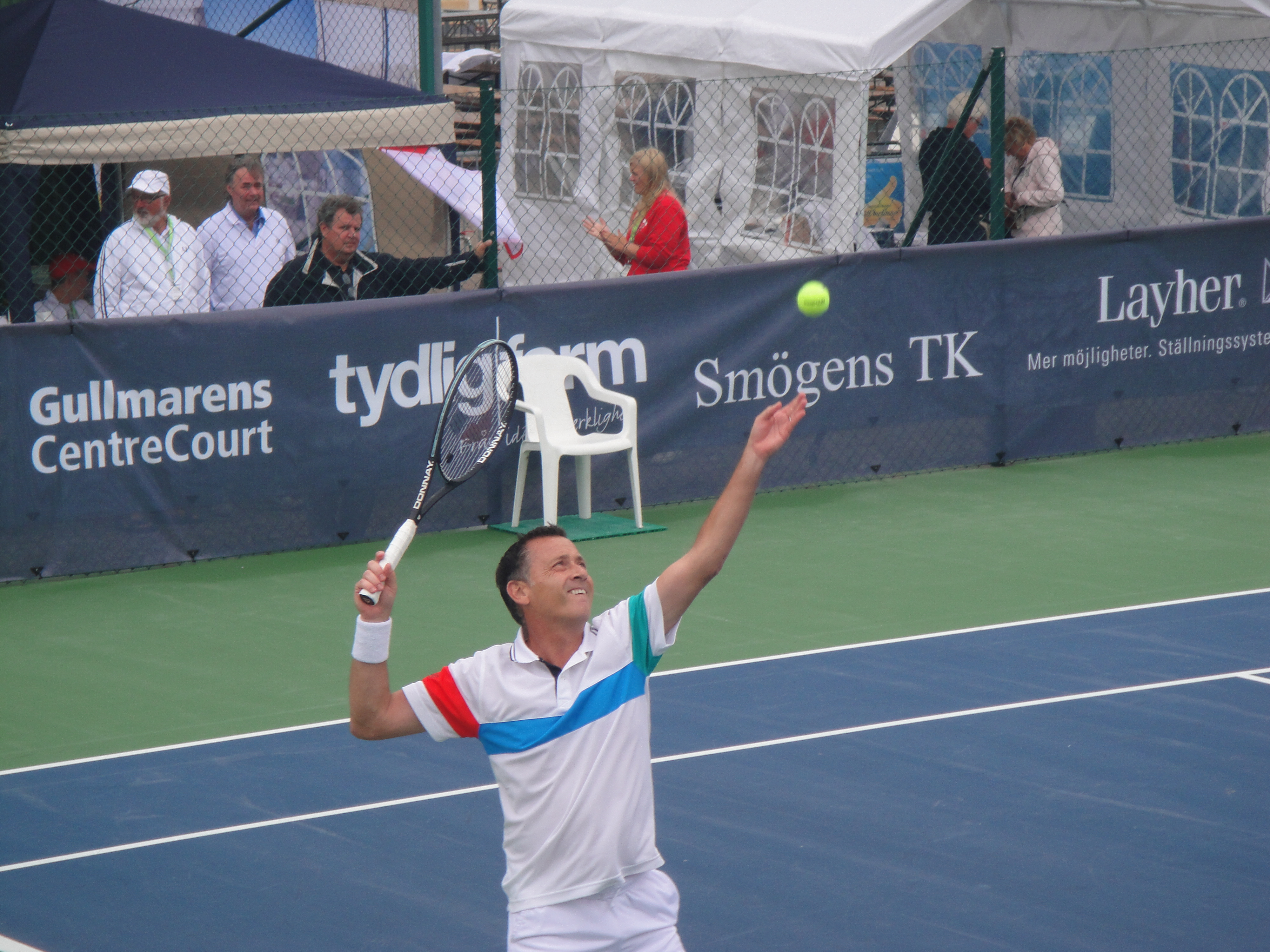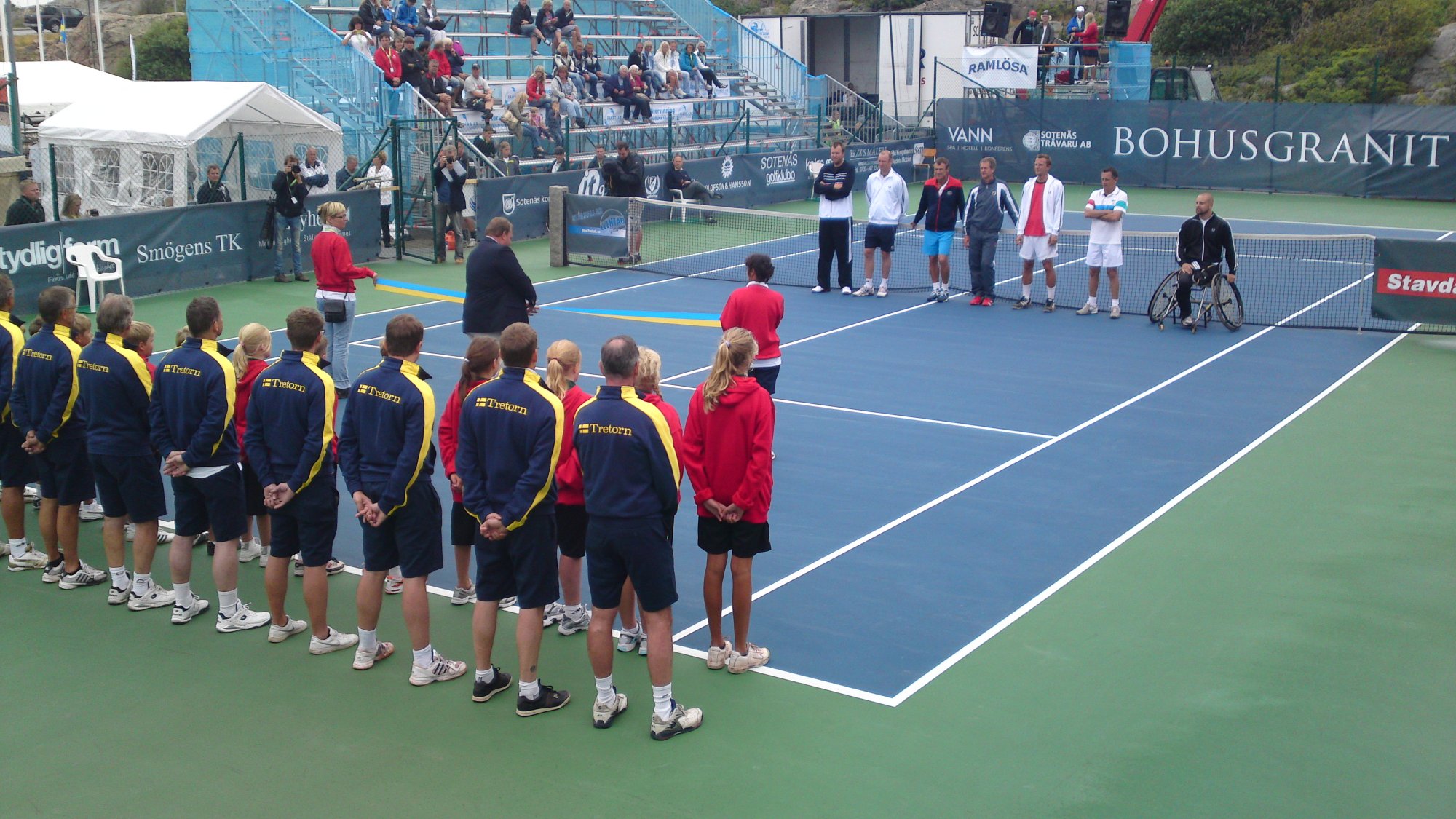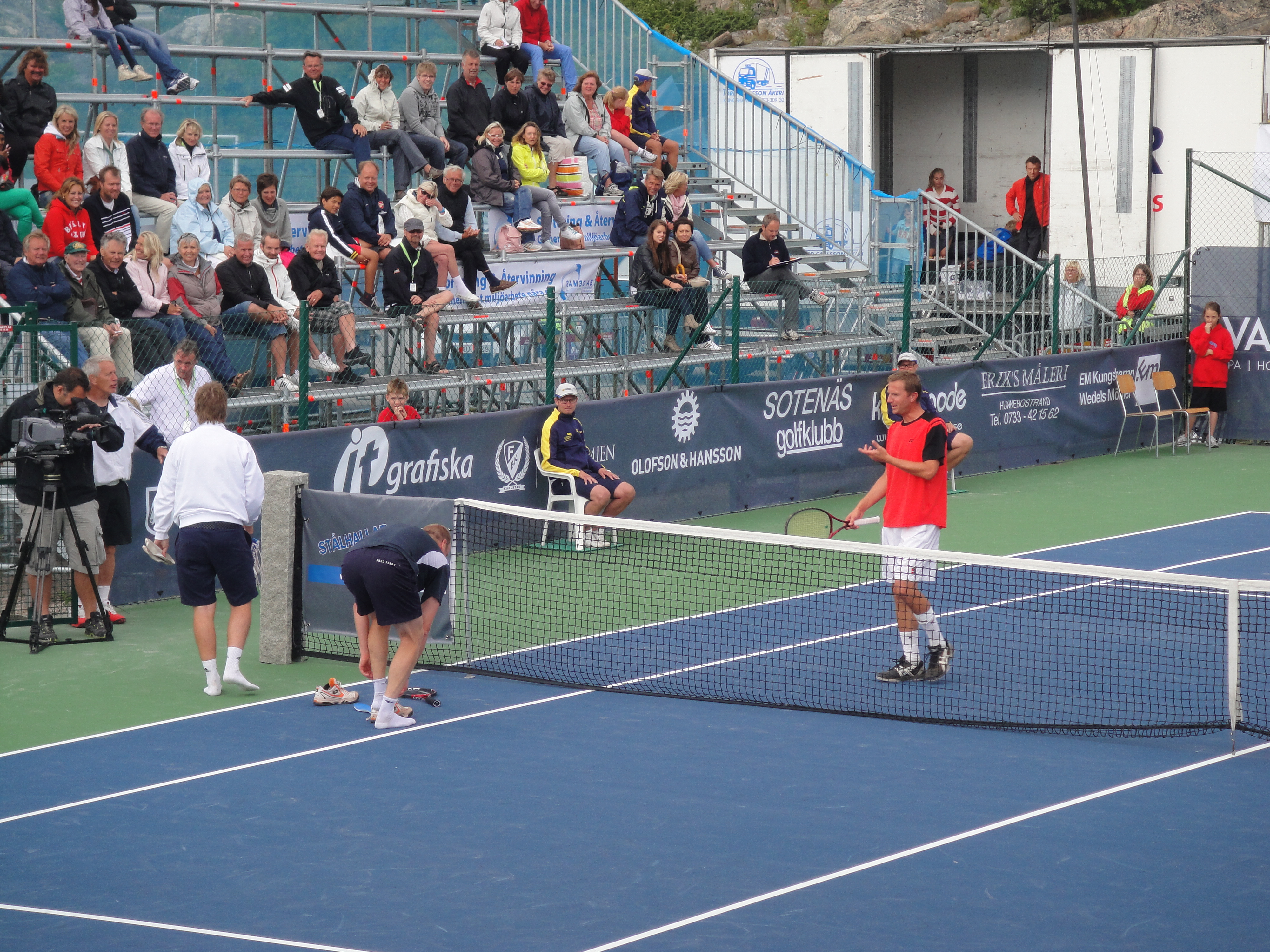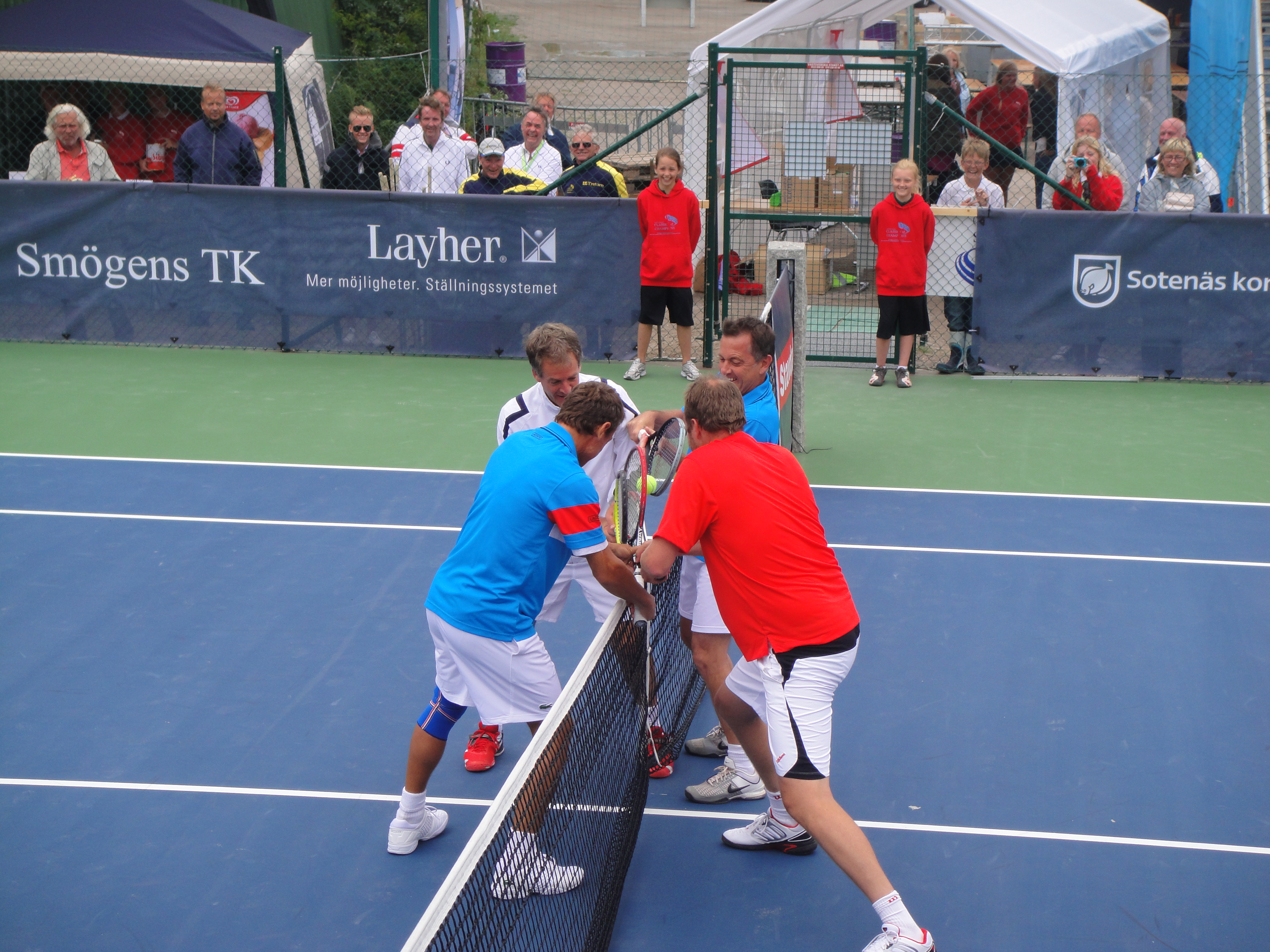 2011 så var Classics flyttat till Smögen från Lysekil. Det behövde väl röra på sig lite. Fast jag saknade Lysekil. Smögen är otroligt vackert och banan där ligger intill berget och inomhushallen. Sen så är det hardcourt. Lite lättare att jobba med vid regn om inte annat. Jag var där som banchef. Det var en del regn, men med fantastiska linjemän och kvinnor så lyckades vi ro det i hamn. Jag sa det då och jag säger det igen, Ni från Hunnebostrand, Kungshamn och Smögen m.m. gjorde ett kanonjobb för att få ordning på banan. Stort tack för hjälpen. Vi hade gummiskrapor som vi puttade undan vattnet med. Det fungerade jättebra.