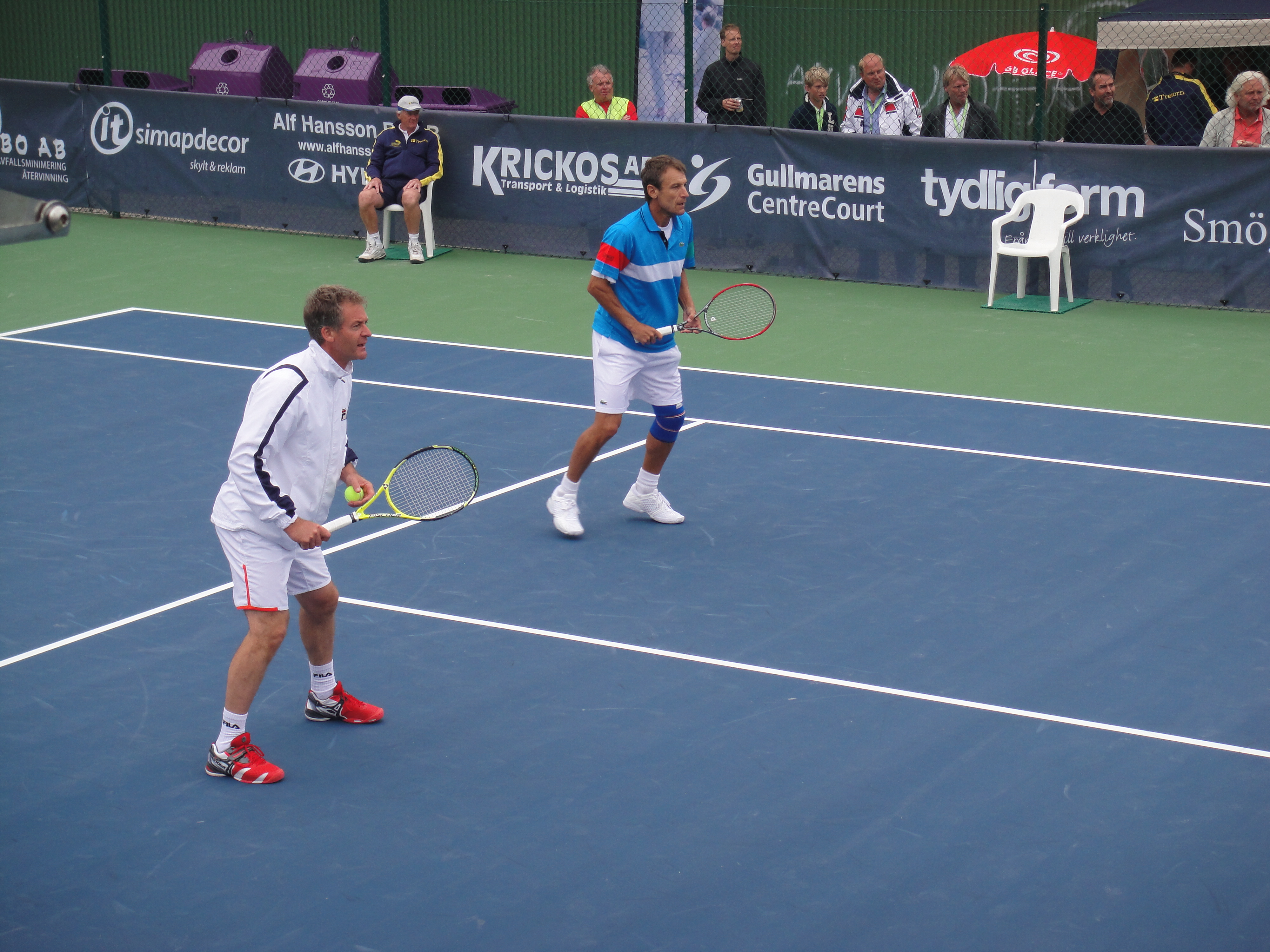 Sen blev det lite dubbel. Larsson och Pernfors på ena sidan och Wilander och Järryd på andra.