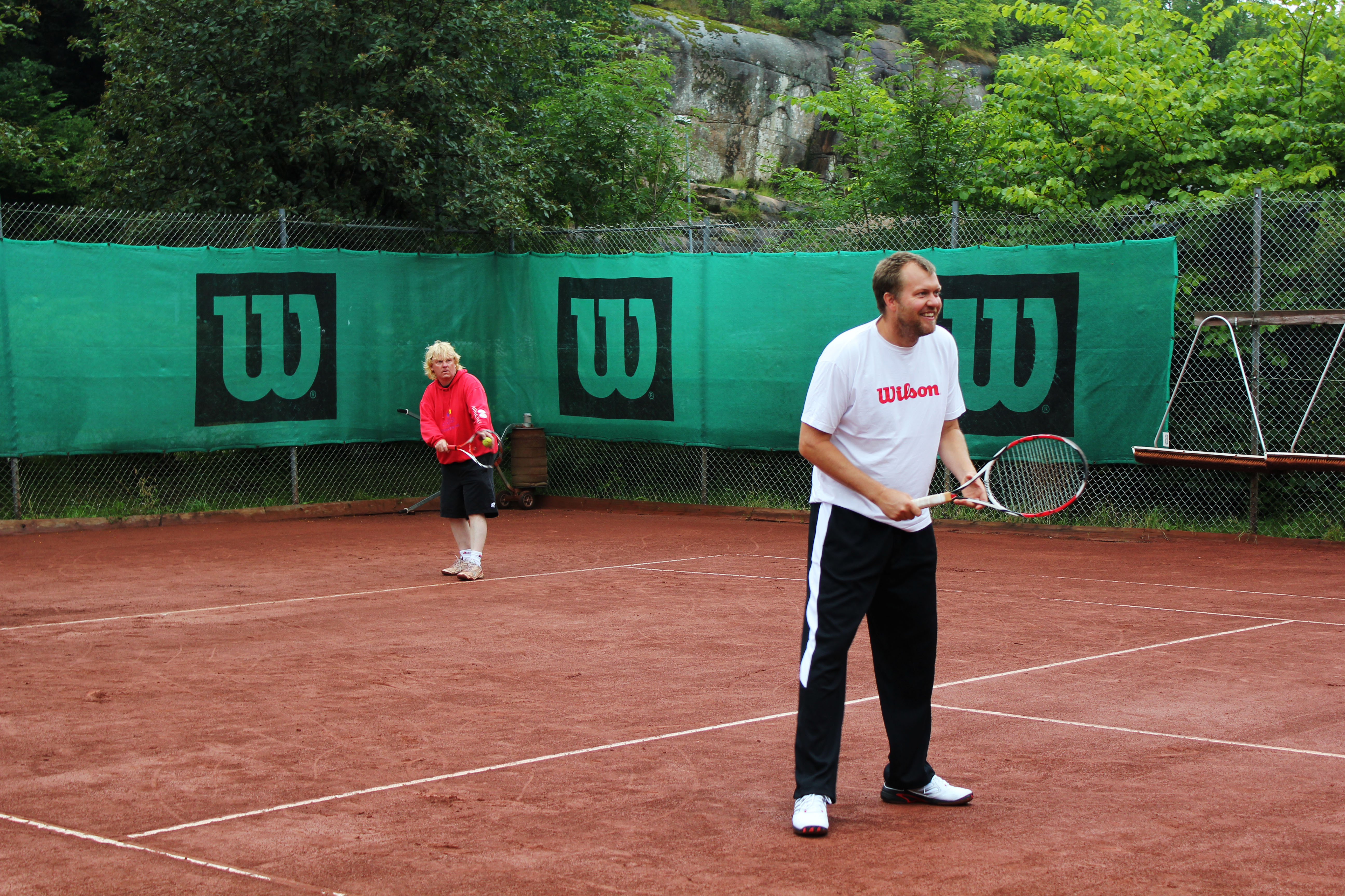 På lördag morgon hade vi pro-am ute vid Hunnebostrands tennisanläggning. Det var en tragisk morgon, 87 döda i Oslo på Utöya berättade de i radion när vi åkte till Hunnebostrand. Usch usch.