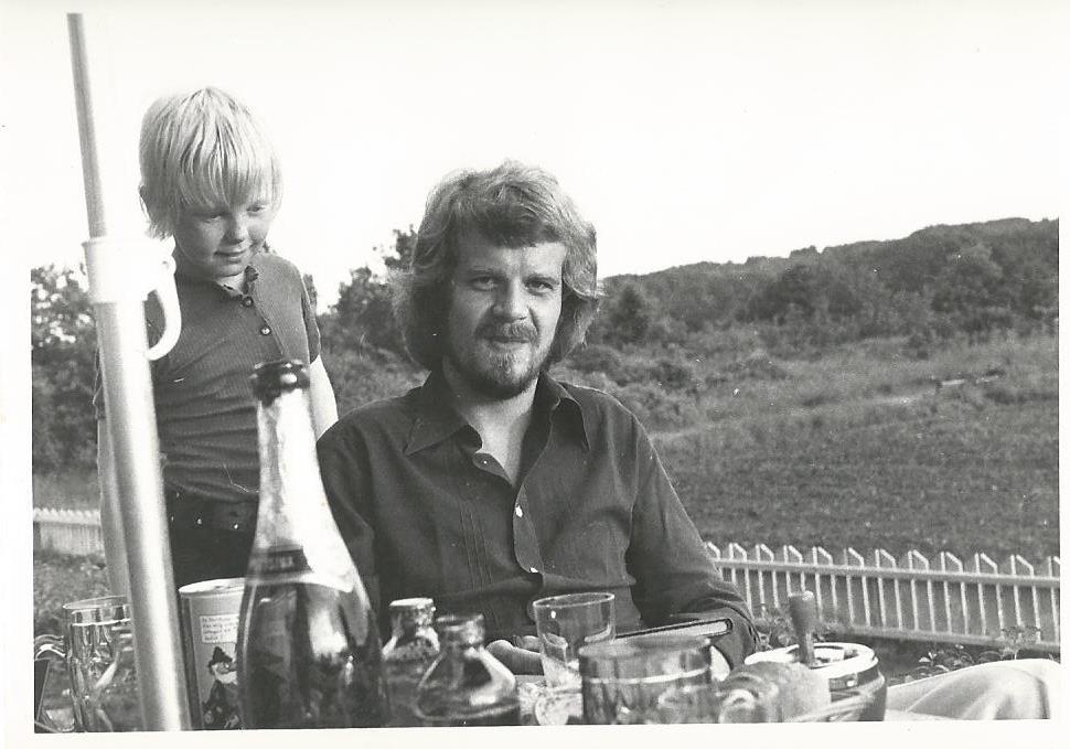 Ulf Elfving. Pappa hade mycket kontakt med Ulf. Här är vi i Uddevalla.