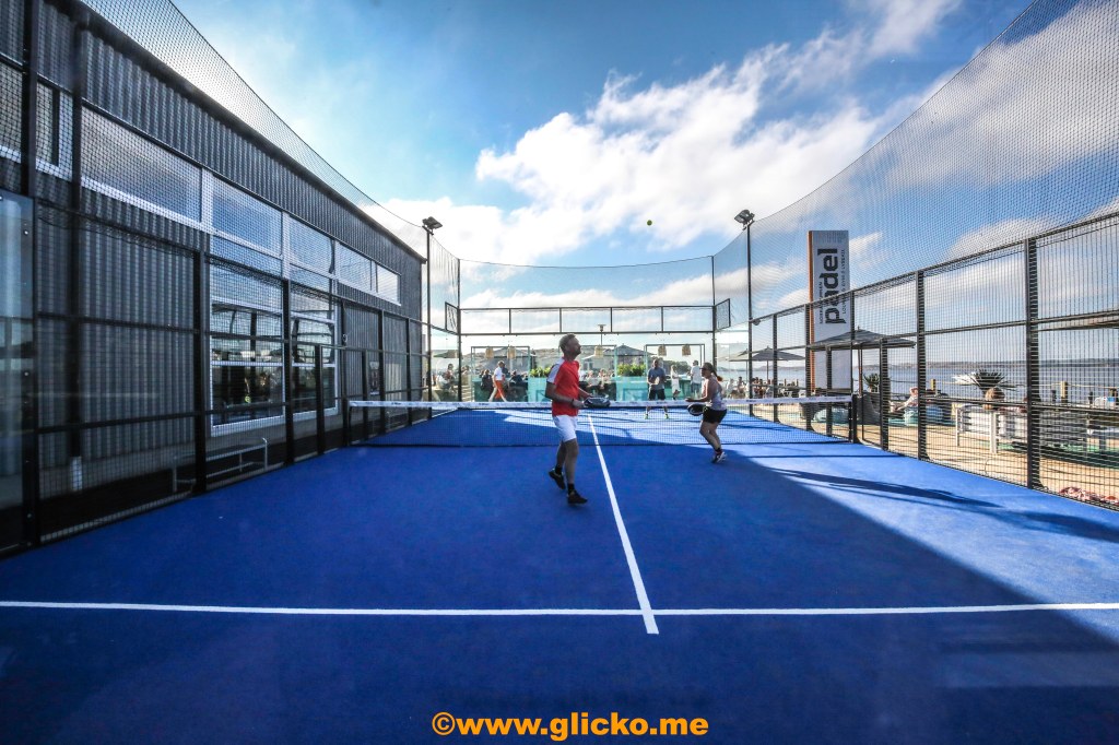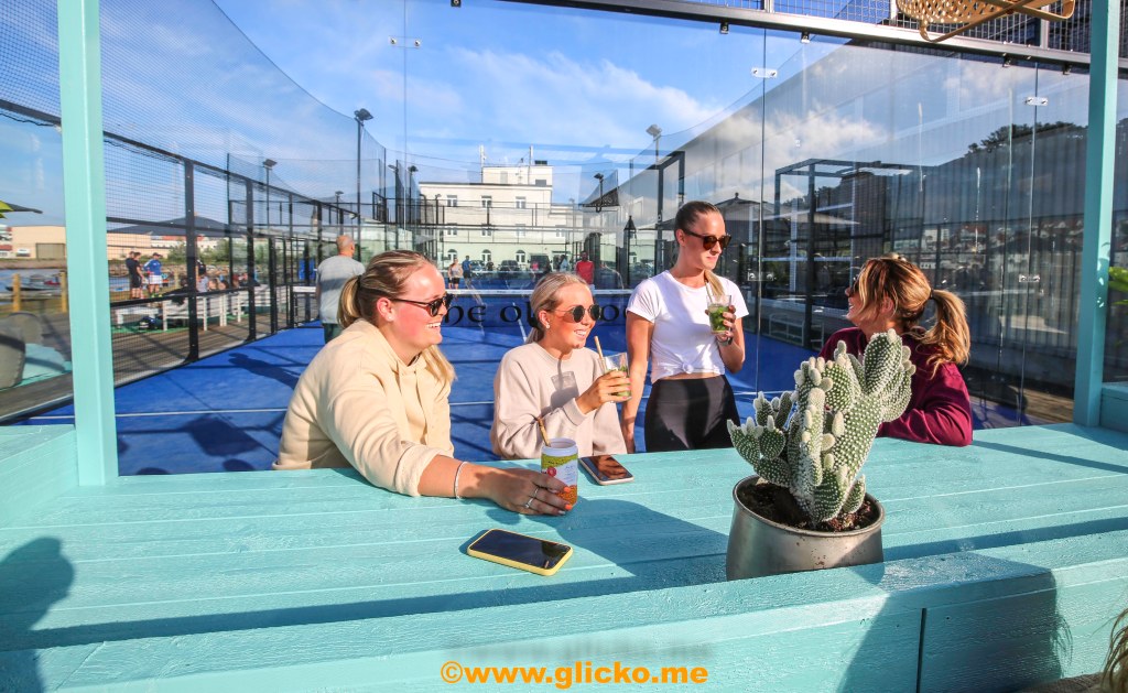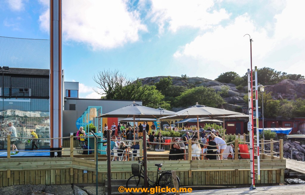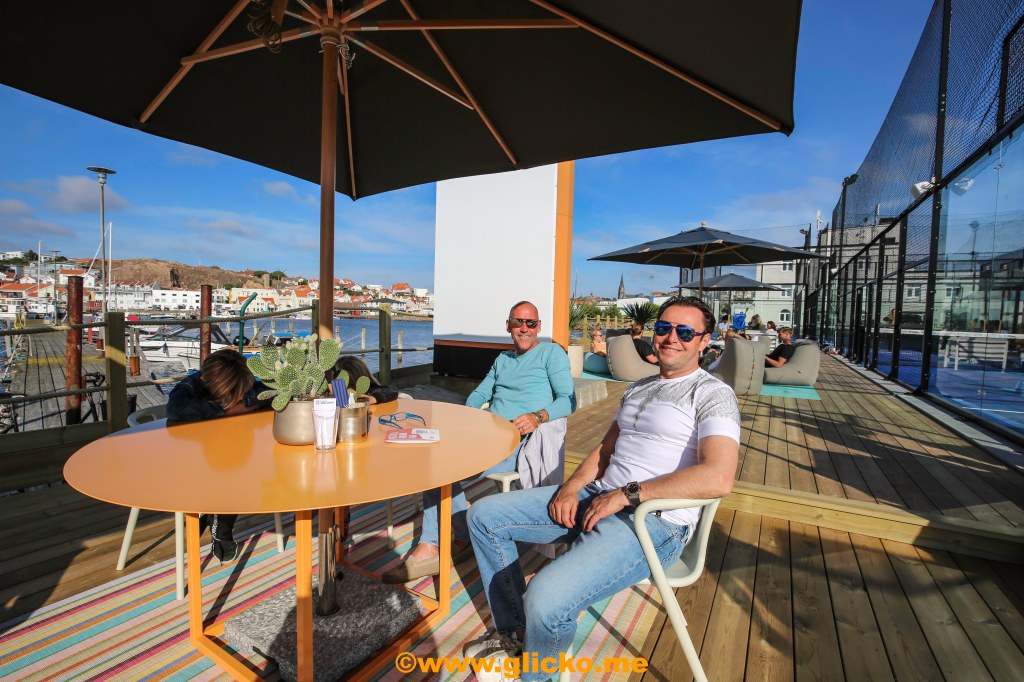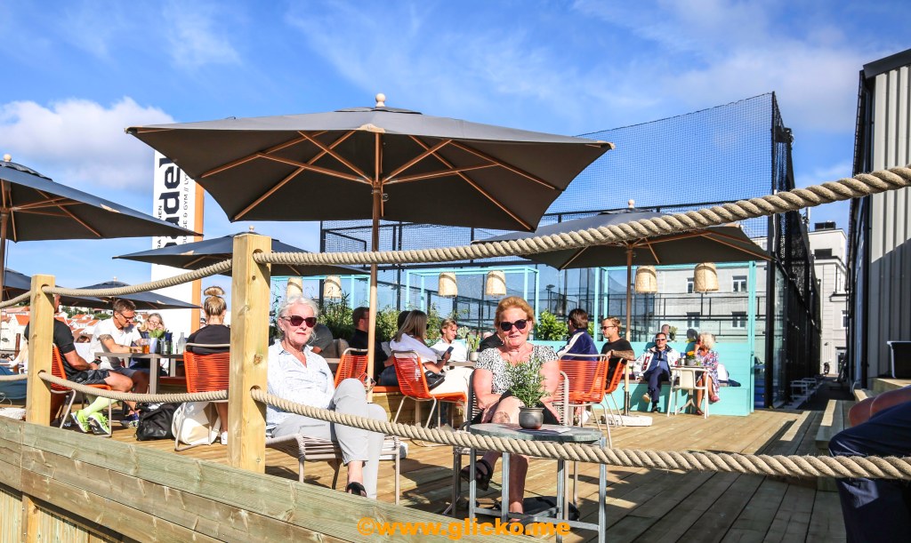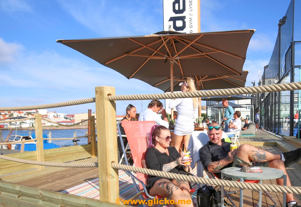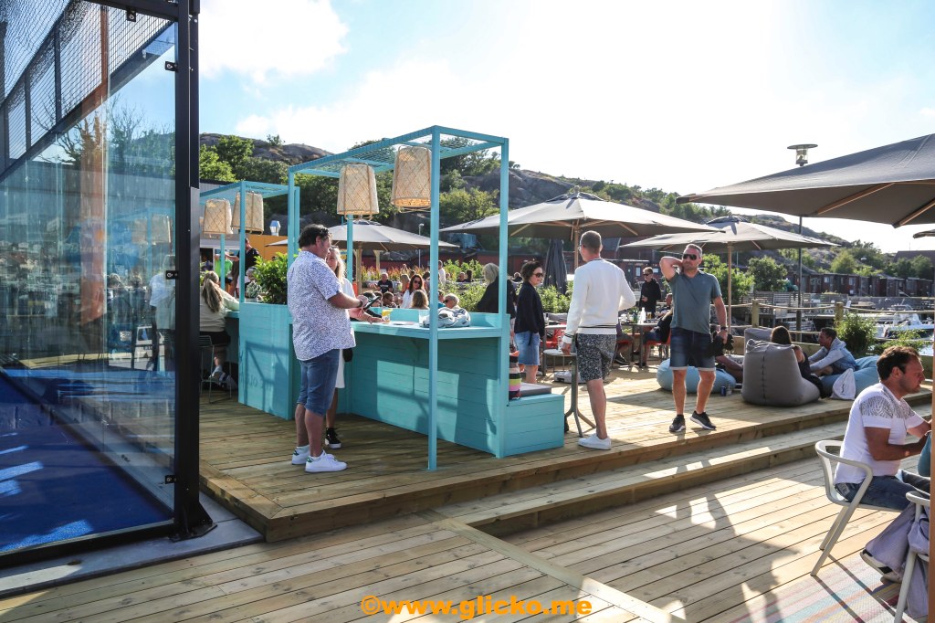 En 500 kvadratmeter stor uteservering i direkt anslutning till Sveriges mest havsnära padelbanor. Här kommer lite foton från premiärdagen i detta underbara väder. Det var bara glada miner och folk höll avstånd och myste i solskenet.