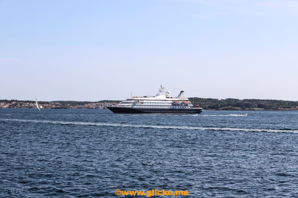 Nu på eftermiddagen kl. 15:00 fick nästa fartyg lots in till Gullmarsfjorden och det var SeaDream I som lade ankar i Gullmarsfjorden och anlände Ångbåtsbryggan i Lysekil med sina tenderbåtar.