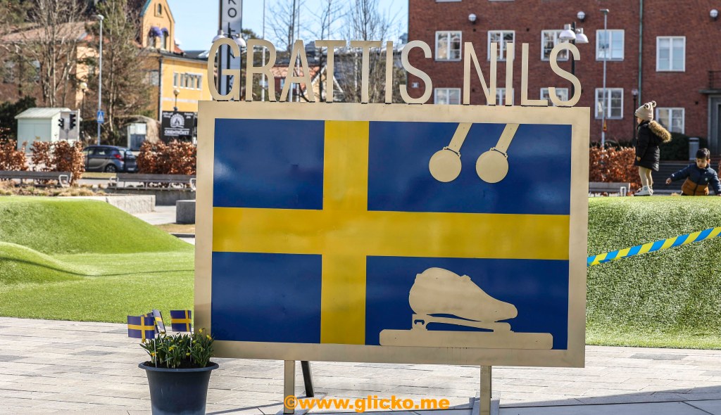 Jag var ganska tidigt på plats i Trollhättan och hämtade ut mitt presspass och tog sedan en promenad genom centrum för att se all utsmyckning som gjorts inför dagens hyllning av Nils van der Poel som efter två OS-guld, ett VM-guld och världsrekord under denna säsong så lägger Nils skridskorna på hyllan.