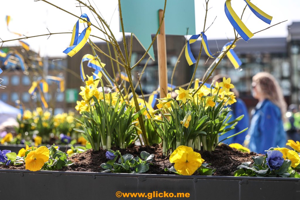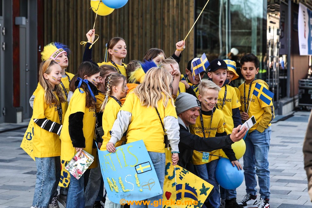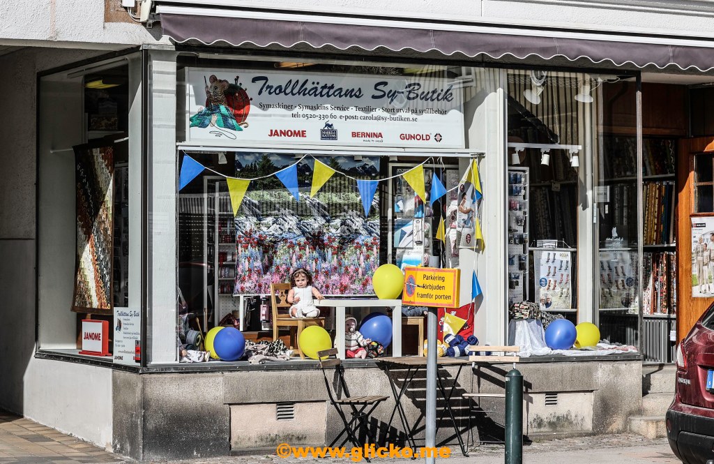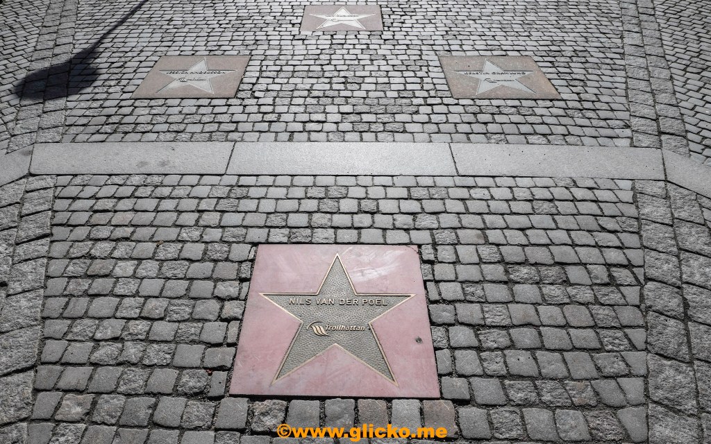 Många av affären i Trollhättans centrum skyltade med de svenska färgerna i fönstren. Jag gick vidare till Park of Fame där Nils fick en stjärna i september 2021.