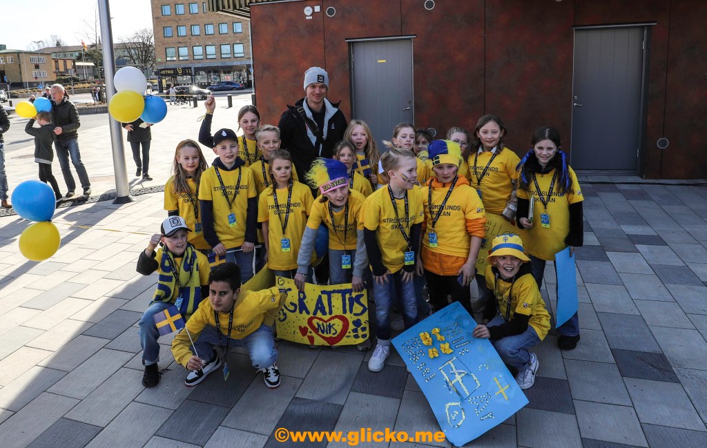 Tillbaka till Drottningtorget så poserade Nils både med Skridskoklubben Trollhättan och Strömslundsskolan.