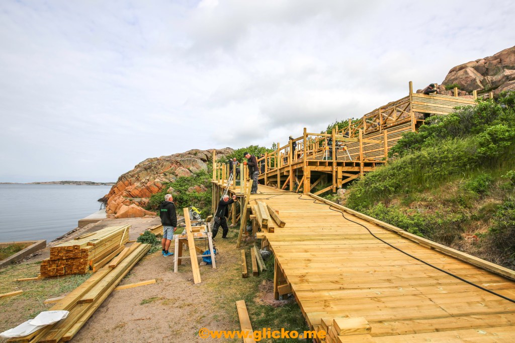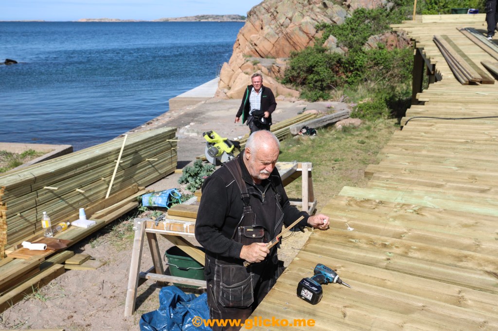 Nu görs det sista av arbetet för att få klart strandpromenaden. Roland Karlsson, ordförande i Lysekils Vänner berömmer alla som är med och hjälper till och det har blivit ett glatt gäng som gör ett fantastiskt jobb med att bygga denna grandiosa fina strandpromenad här i Lysekil.