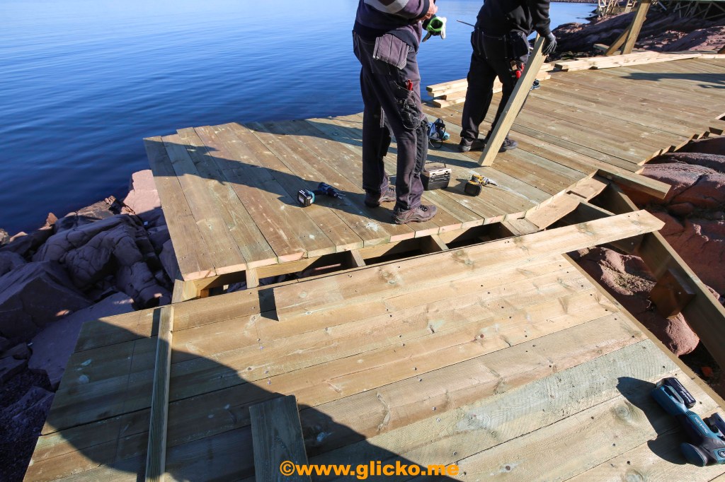 Den sista lilla brädbiten till promenaden sågas till.
