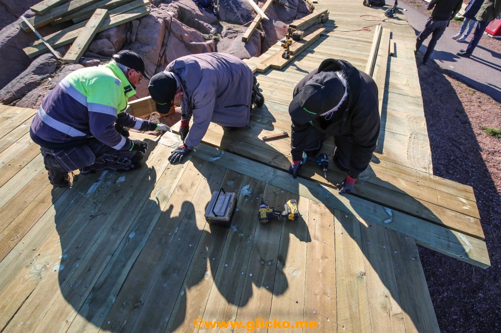 Det var för tre år sedan Lysekils Vänner startade bygget med denna otroligt fantastiska promenad och nu är den sista brädan på plats. Fortfarande återstår en hel del jobb innan allt är klart till invigningen den 26 maj.