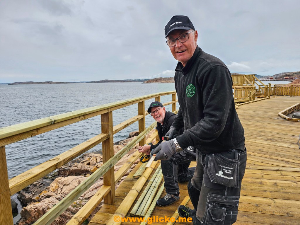 Jag kan inte annat än hålla med ordförande Roland Karlsson och skattmästare, Bengt-Göran Gunnarsson i Lysekils Vänner att bygget av den 1100 meter långa Västerhavspromenaden är ett unikum. Dessa sista fyra dagarna när Lysekils Vänner gjort det sista för att färdigställa promenaden har jag varit nere vid Ålevik och fotograferat.