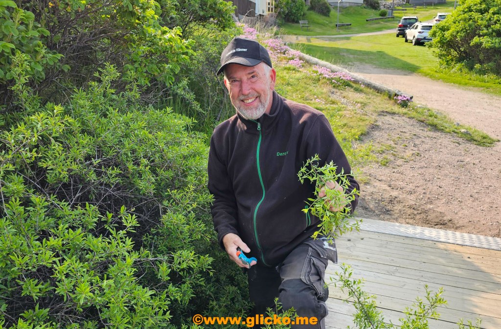 Det regnar lite på måndagen när jag hälsade på nere i Ålevik. Men det var som vanligt bara glada miner. Lysekils Vänner håller på att finslipa för överlämningen av Västerhavspromenaden till Lysekils kommun på invigningen imorgon fredag kl.17:00.