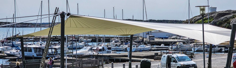 Idag började de montera segeldukstaket i Havsbadsparken i Lysekil. Segeldukstaket är till för att vädersäkra området i Havsbadsparken vid regn. Kustnöje AB står för segeldukstak och stolpar och Lysekils kommun anlade grundfundament som stolparna förankras i. Nu sätts segeldukstaket upp av Kinnevikens Segelmakeri AB och strömmen för att kunna styra taket kopplas in av Granitor.