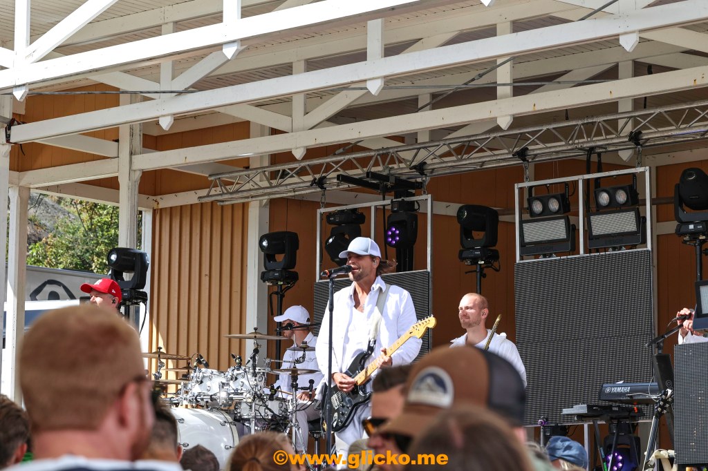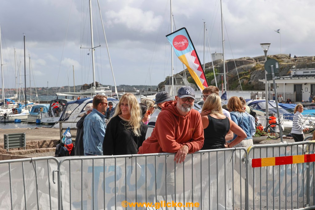 Redan kl.13:00 slogs portarna upp till Kustnöjes Måndagsklubb. Det var uppladdning inför kvällens konsert på Gullmarsvallen med Gyllene tider och Uno Svenningsson som gästartist. Massor av folk och vädret verkade som det hölls sig lugnt, förutom vinden som slog i seglen vid båtarna bredvid Havsbadsparken.