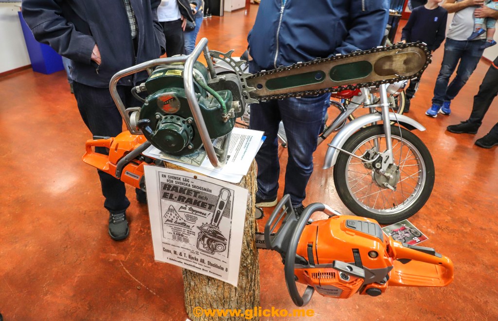 I starten tillverkade man träbearbetningsverktyg. 1954 började de tillverka motorsågar och i inne i anläggningen på lördagens visning kunde man se ”Raket” som den hette då. Den första motorsågen tillverkades i samarbete med AB Como.