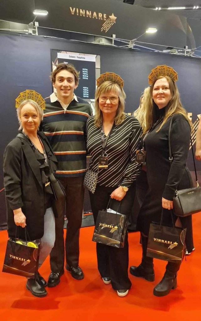 Här är Martina, Ann-Marie och Josefin med Armand Duplantis. Foto privat.