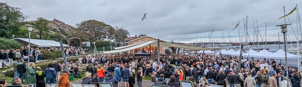 Den kom en skvätt regn i början på kvällen, men när jag lämnade Havsbadsparken strax innan det var slut så var det riktigt härligt. Det märks att det är mycket folk i Lysekil för det kändes som det var rekord i publik denna måndagskväll i juli.