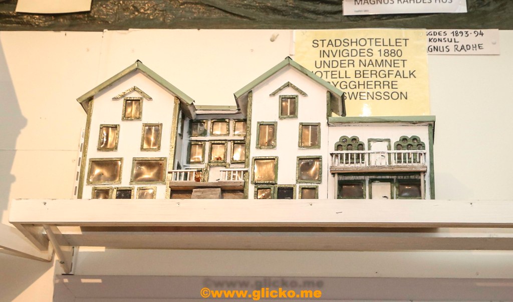 Under slutet av 80 -och 90-talet skapade han dessa modeller som blev uppställda på Bansviksgatan så att allmänheten kunde se dem. Marita berättar vidare att de fick bygga flera hyllor i berget för att alla byggnader skulle få plats.