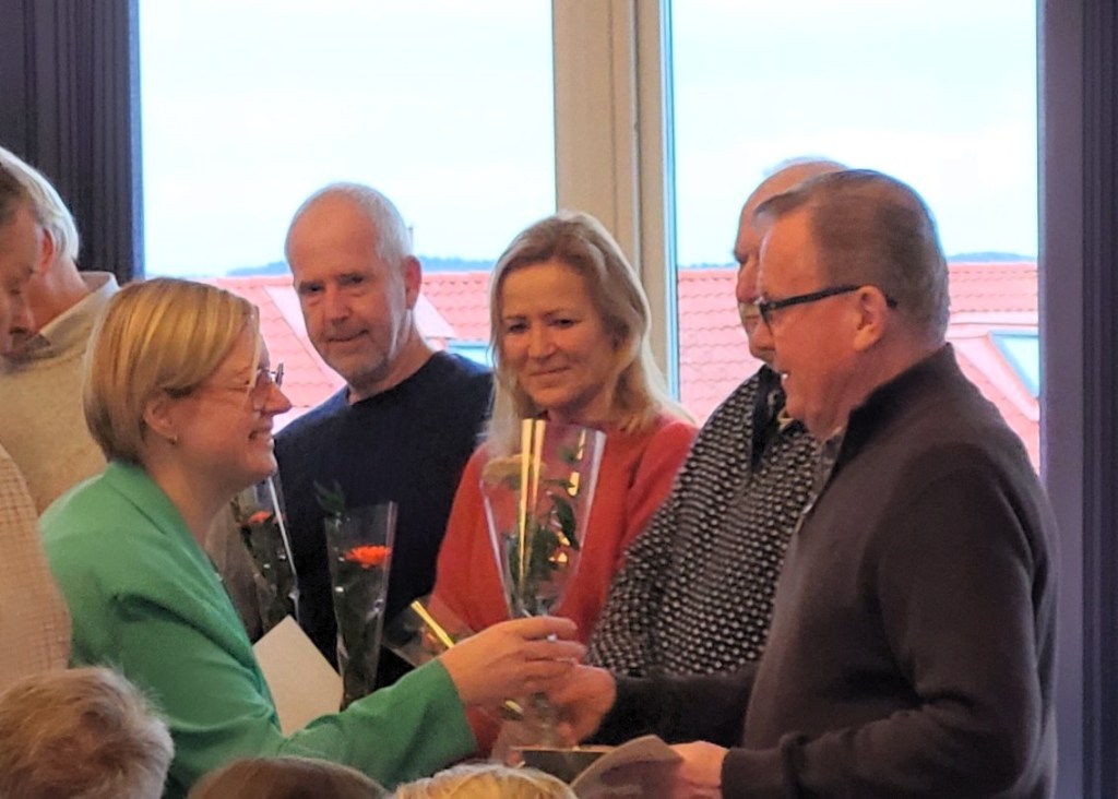 Samhällsbyggnadsnämndens ordförande Björn Martinsson lämnade över plaketten till Lysekils Vänners ordförande Roland Karlsson och Marina Karlgren Jonsson 2:e vice ordförande i Samhällsbyggnadsnämnden lämnade över en blomma till arbetsgruppen i Lysekils Vänner.