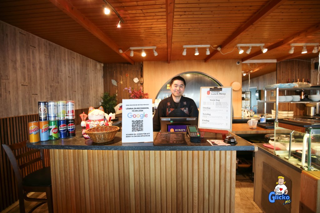 Idag har de en gedigen matsedel med både sushi, varmrätter, onlinebeställning och sushirestaurang Hinoya har även fullständiga rättigheter.