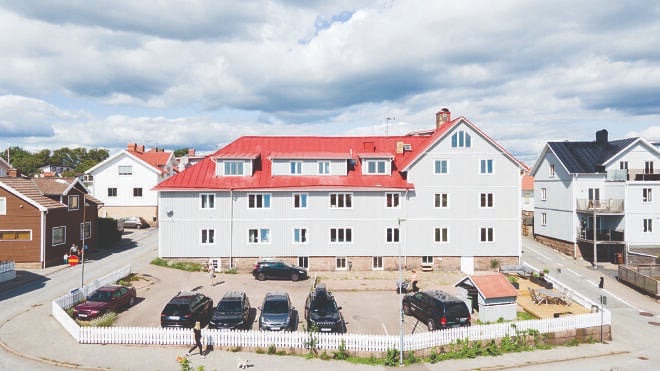 Så här ser gamla Folkets Hus på Kronberget ut i dag när det innehåller lägenheter i stället. Bild lånad med tillstånd av Lysekilsposten.