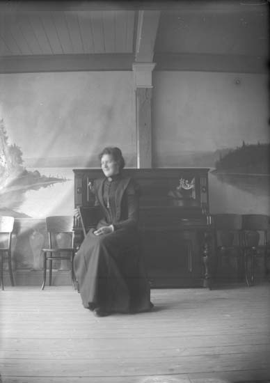 Lysekil, på Lindbergs veranda. (Svea) 1898. Bohusläns museum. (Bilden visar en kvinna sittandes framför en orgel på Hotell Continental).
