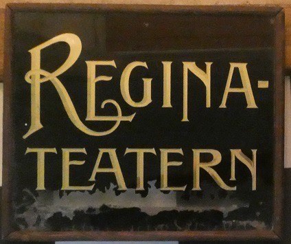 Skylt från Reginateatern. Bild lånad från Christer Börjessons, Lysekils Auktionsbyrå.