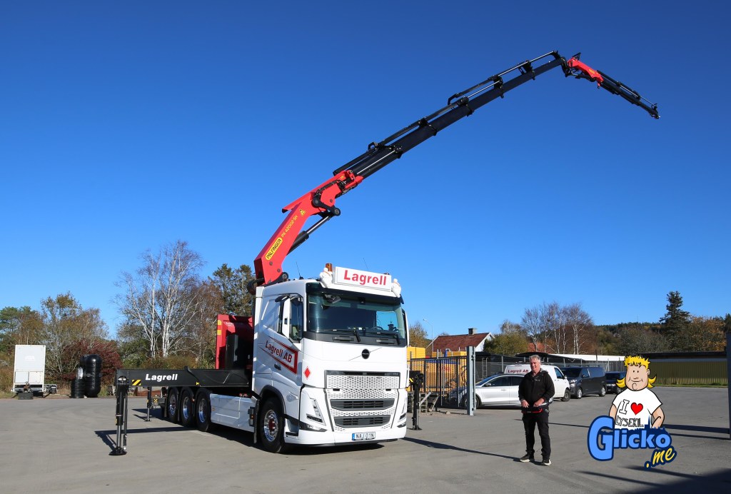 Peter med den nya kranbilen vars arm når 25 meter