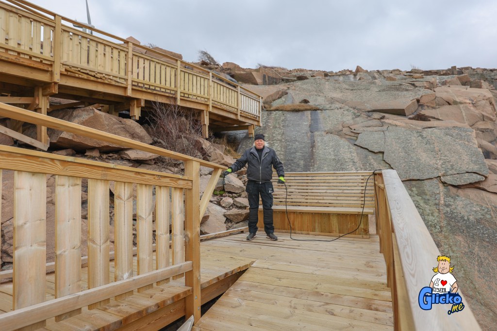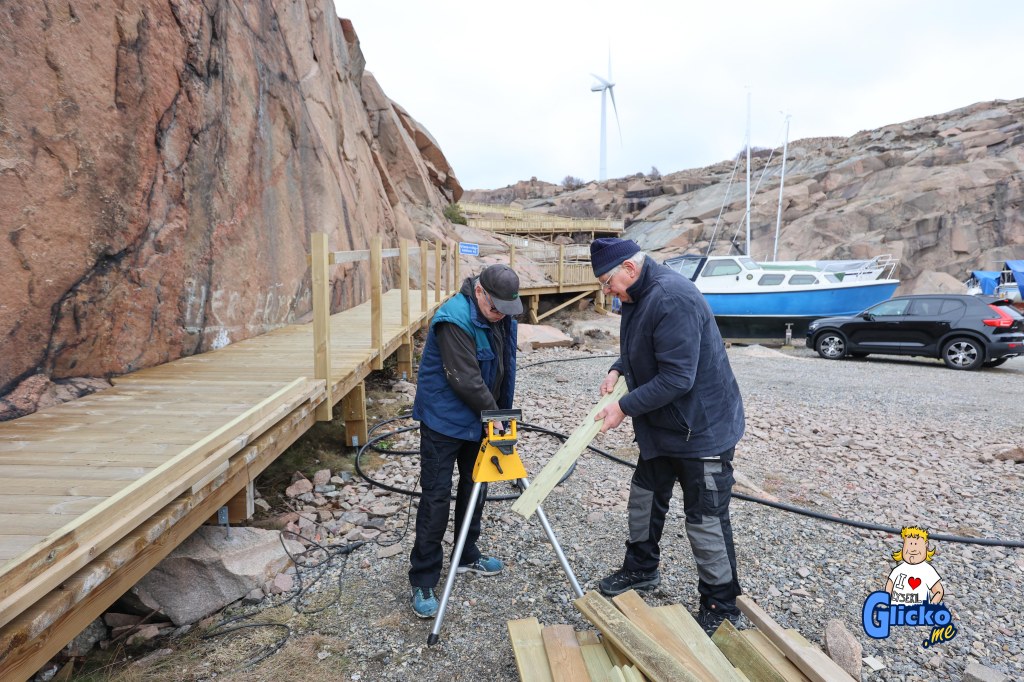 Efter att de är klara med promenadvägen i Valbodalen så blir det att flytta sig några hundra meter och ta sig ut till Valboholmen för att göra en hel brygga från den befintliga ut till den som ligger längre fram i berget. Det är problem att ta sig ut till sluttampen så därför hjälper Lysekils Vänner till och gör i ordning den biten berättar Roland vidare.