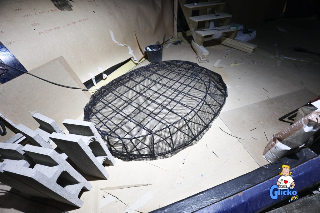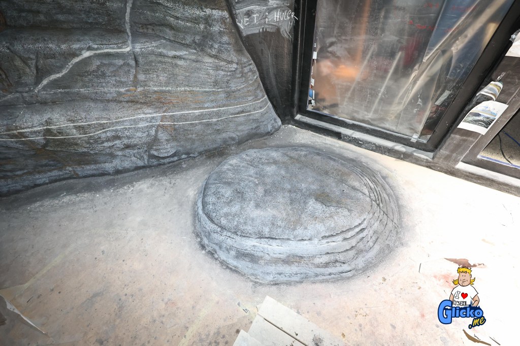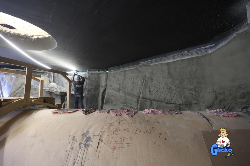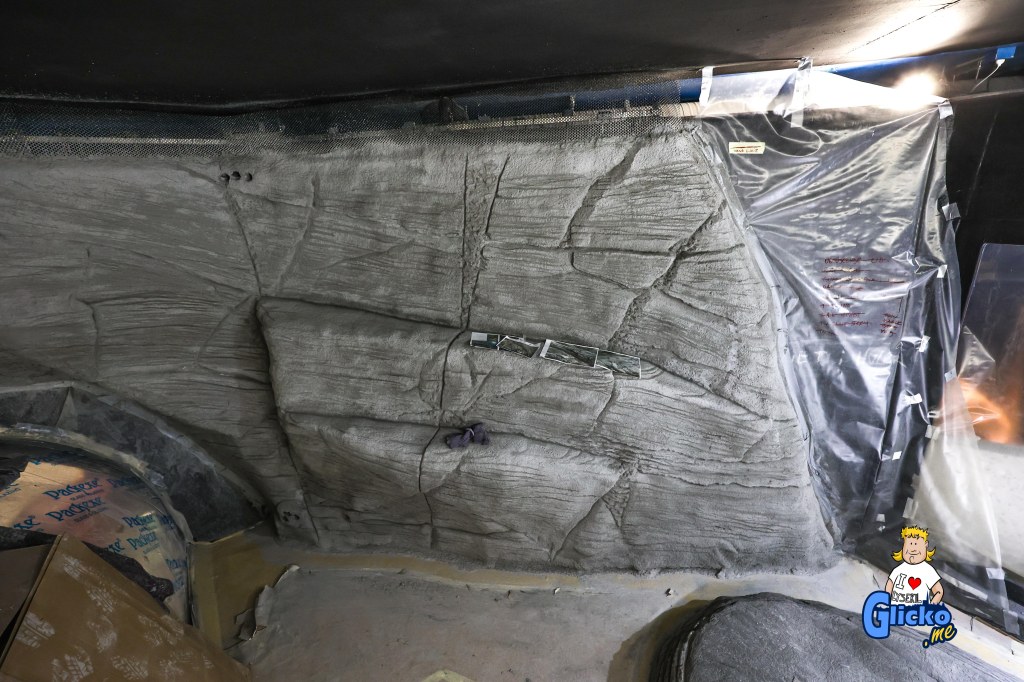 Här kan man se hur bergsväggarna i akvariet börjar ta form.