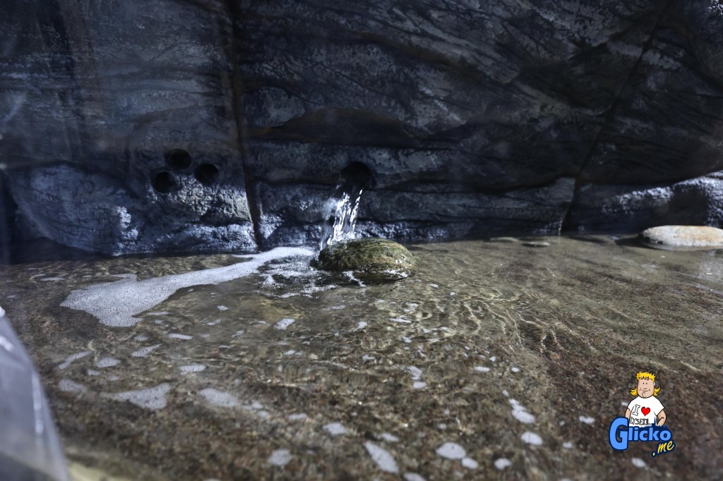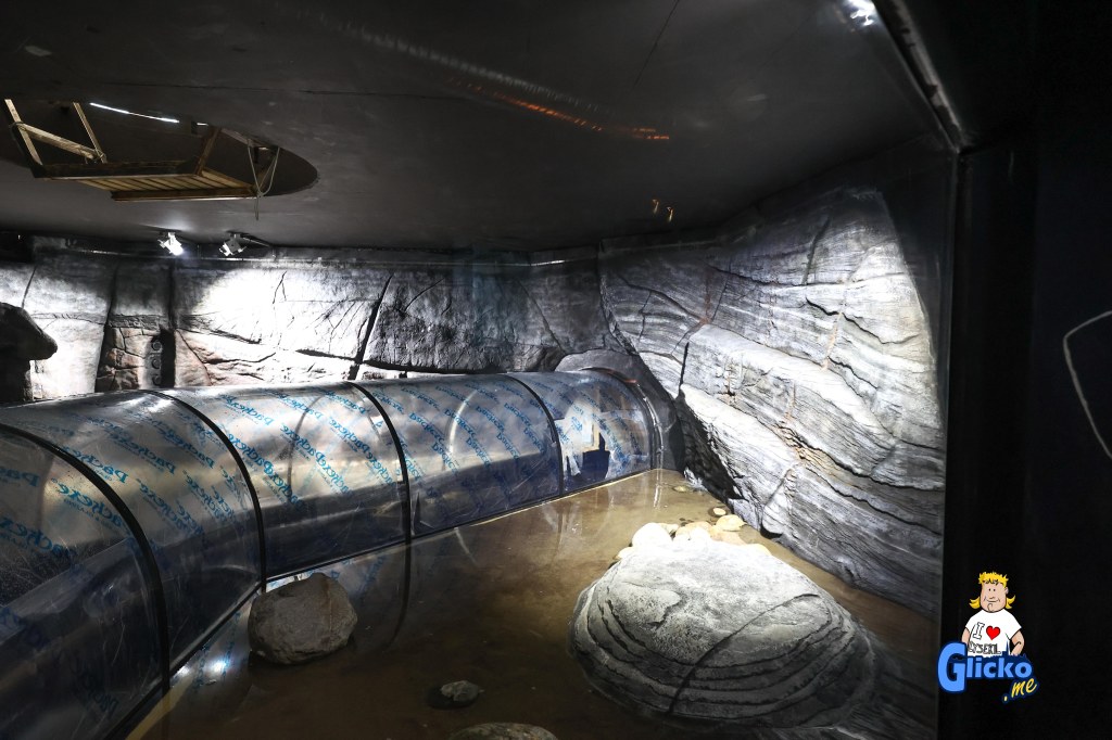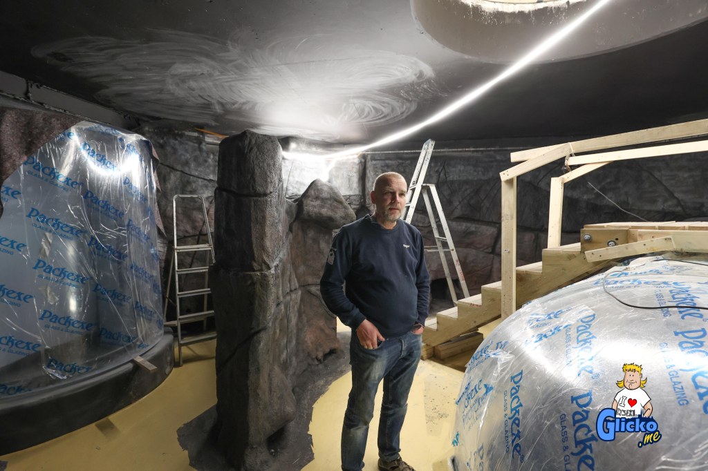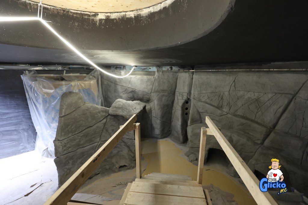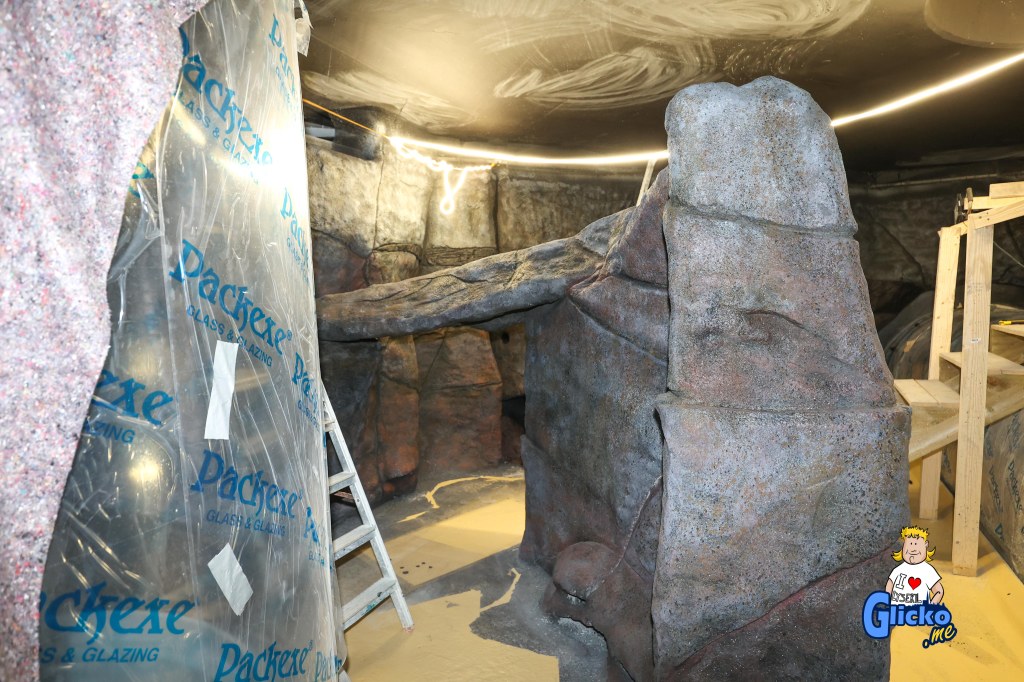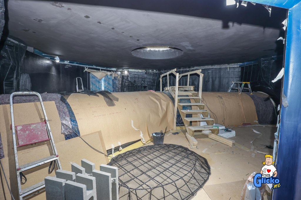 Innan poleringen av akrylplasten så var den danska firman Make Make på plats och byggde alla berg i akvariet. Företaget Make Make har även byggt det stora regnskogsträdet på Universeum i Göteborg.