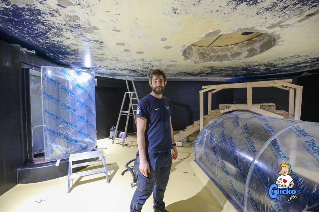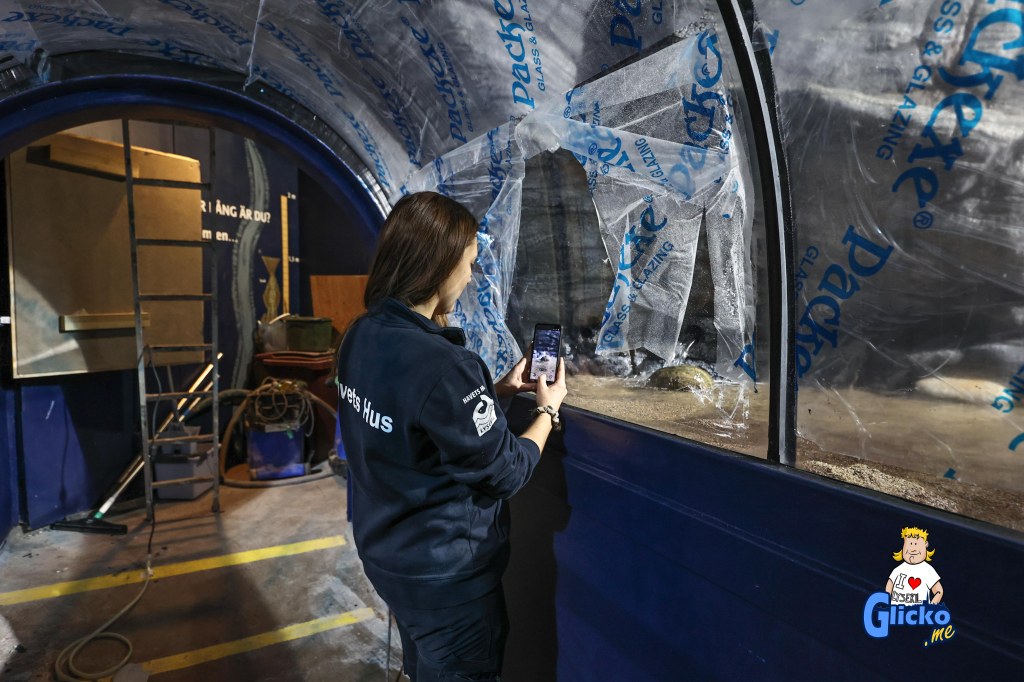 Akvarietekniker Martin Stjernstedt berättar för mig om renoveringen av tunnelakvariet.