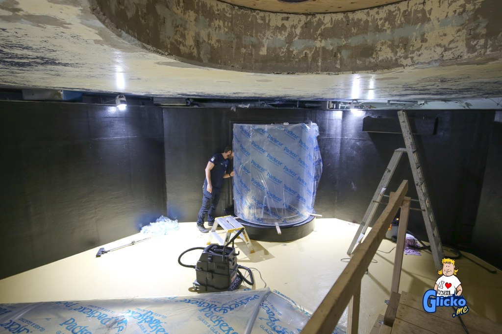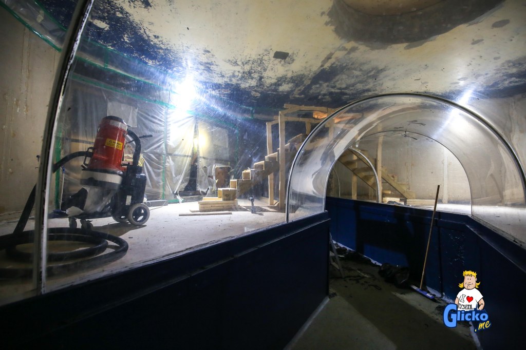 Efter att akvariet tömts på 140 000 liter vatten, så började det med att en betongfirma lagade betongskadorna som uppstått under åren. Sedan var det dags för ATL Aquarium Technology Limited från Storbritannien som plastade om hela akvariet, fogade om alla siliconfogar och polerade upp de tjocka akrylplasten som tunneln är gjord av.
