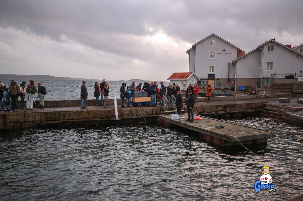 I dag hade Havets Hus hajsläpp vid Havets Hus brygga och bjöd på glögg och pepparkakor. Sex stycken småfläckiga rödhajar skulle släppas ut i Gullmarsfjorden.