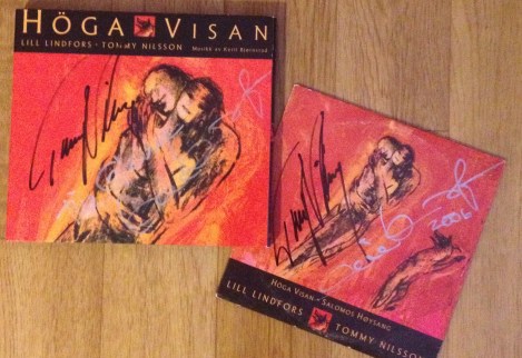 1995 gör Tommy en skiva ihop med Lill Lindfors som heter Höga visan. Här har även Lill signerat skivorna.
