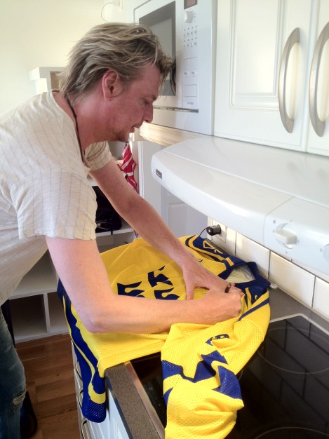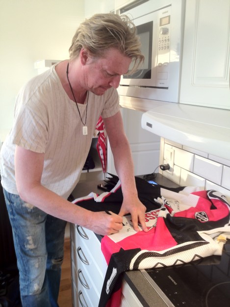 På den tiden så bodde vi i Lysekil och Tove och jag åkte till Skaftö och Gullmarsstrand och hämtade Tommy. Då hade Tommy med sig tröjan från turnén året innan. Den fick jag signerad i somras i Ljungskile när vi var där.