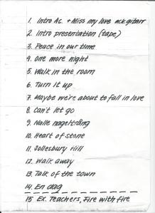 1989 gör Tommy en turné med hockey tema. Kommer ihåg att vi var i Hunnebostrand och såg denna underbara show med Tommy och bandet. Alla hade hockeytröjor på sig och det var domare och det var sarg och även målbur på scenen. Minns att vi gick fram till scenen efter det var slut och presenterade mig. Hade med mig resten av hockeygubbarna som jag gav till Tommy. Han vi träffade sa att dig har jag hört talas om så jag och min fru fick gå ner till Tommy och till min förvåning så berättade Tommy att gubben han fick av mig i Lysekil hade han med sig som maskot på turne´n. Här här låtlistan från Tommy´s turné 1989 från Hunnebostrand.