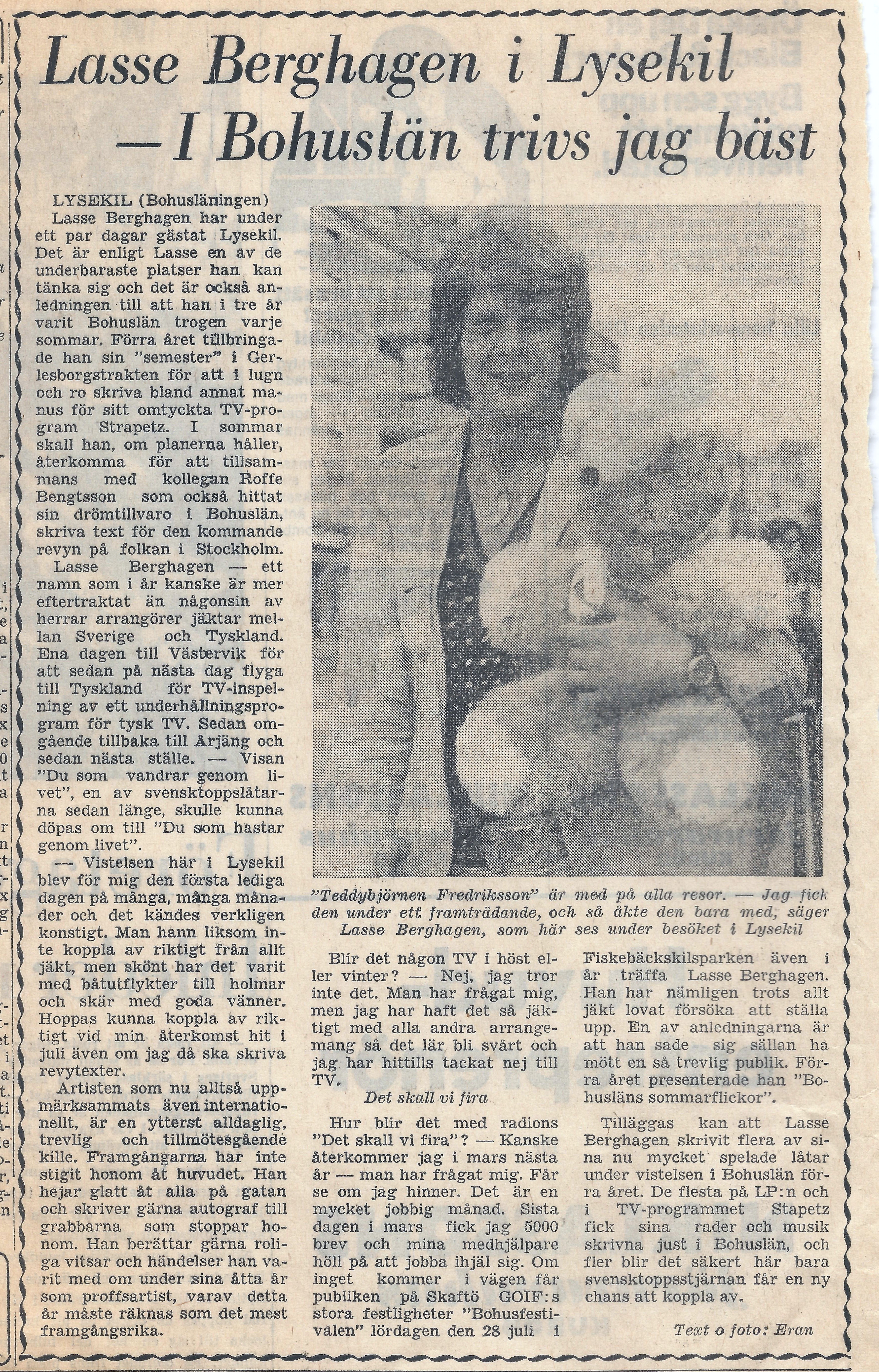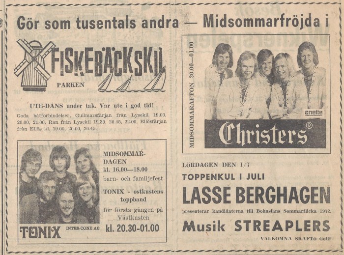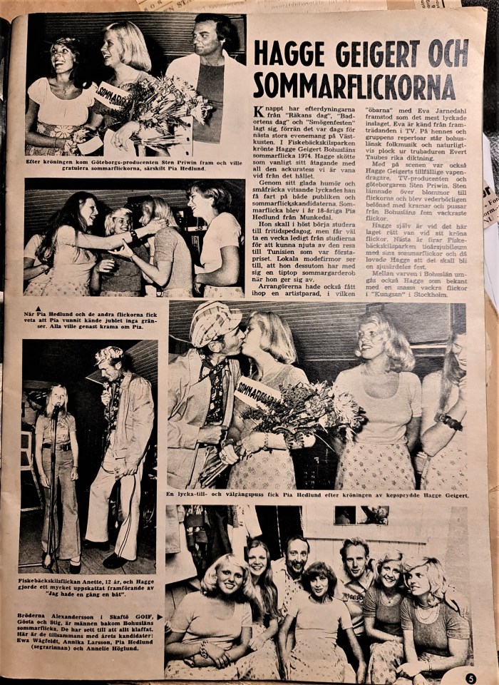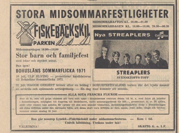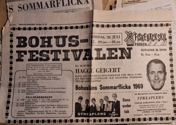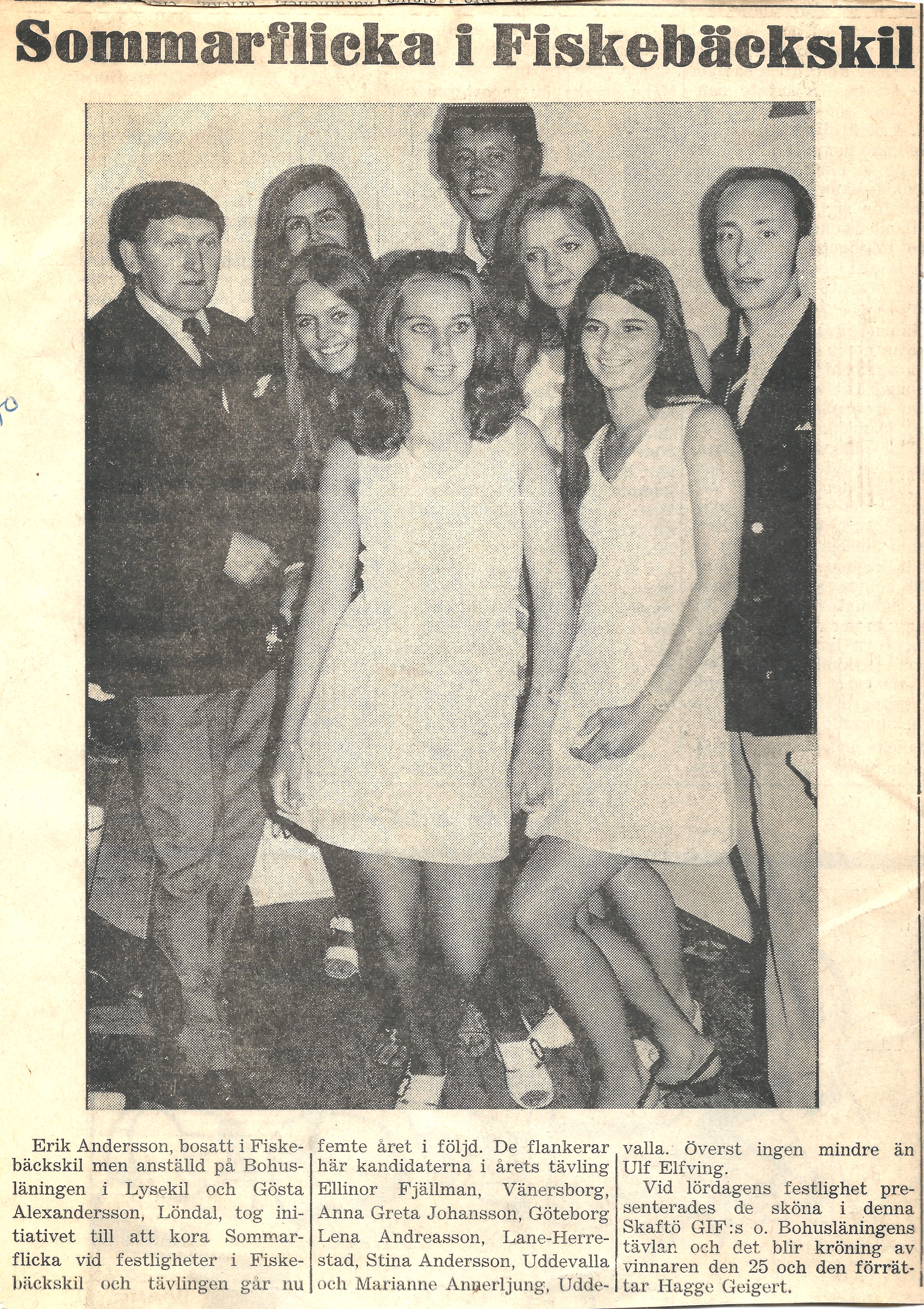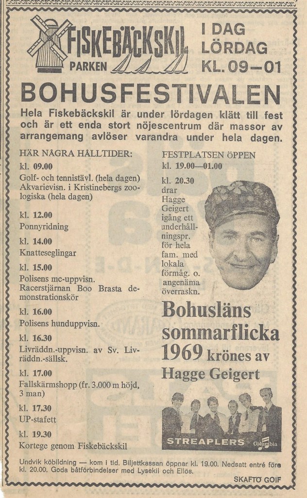 1966 så pratade Gösta med min pappa och då tog pappa kontakt med Bohusläningen som gick in som sponsor och Bohusfestivalen startade och blev ett begrepp på hela västkusten. Bohusläns sommarflicka presenterades av Ulf Elfving bl.a. och genom talonger och röstsedlar i Bohusläningen så fick man rösta på årets sommarflicka. Hagge Geigert var den som krönte sommarflickan i Fiskebäckskilsparken.