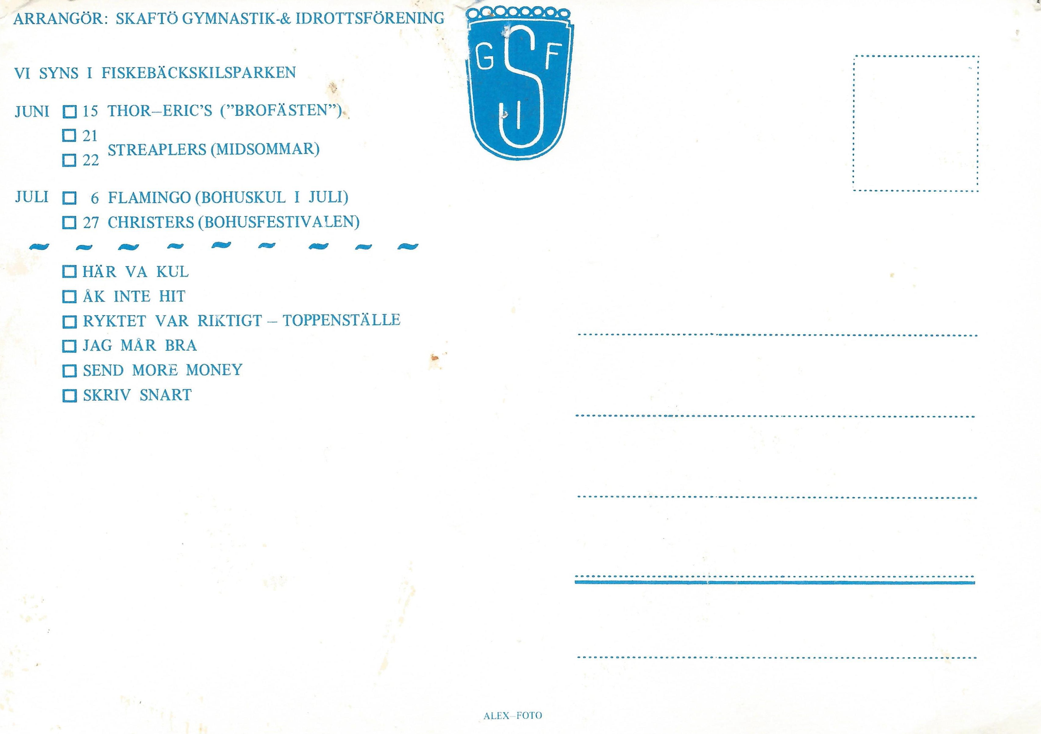 Ett stort tack också till Rolf Bagge som hjälpte mig att hitta lite info om parken. Det var många eldsjälar inblandade i Fiskebäckskilsparken. Här kommer historien om Folkets Park som låg i det lilla samhället Fiskebäckskil på Skaftö. Skaftö var verkligen en ö för att ta sig till Skaftö så var den enda möjligheten att åka färja eller passagerarbåt. Den 28 maj 1974 invigs Skaftöbron så det blir mycket lättare och snabbare att ta sig till och från Skaftö.