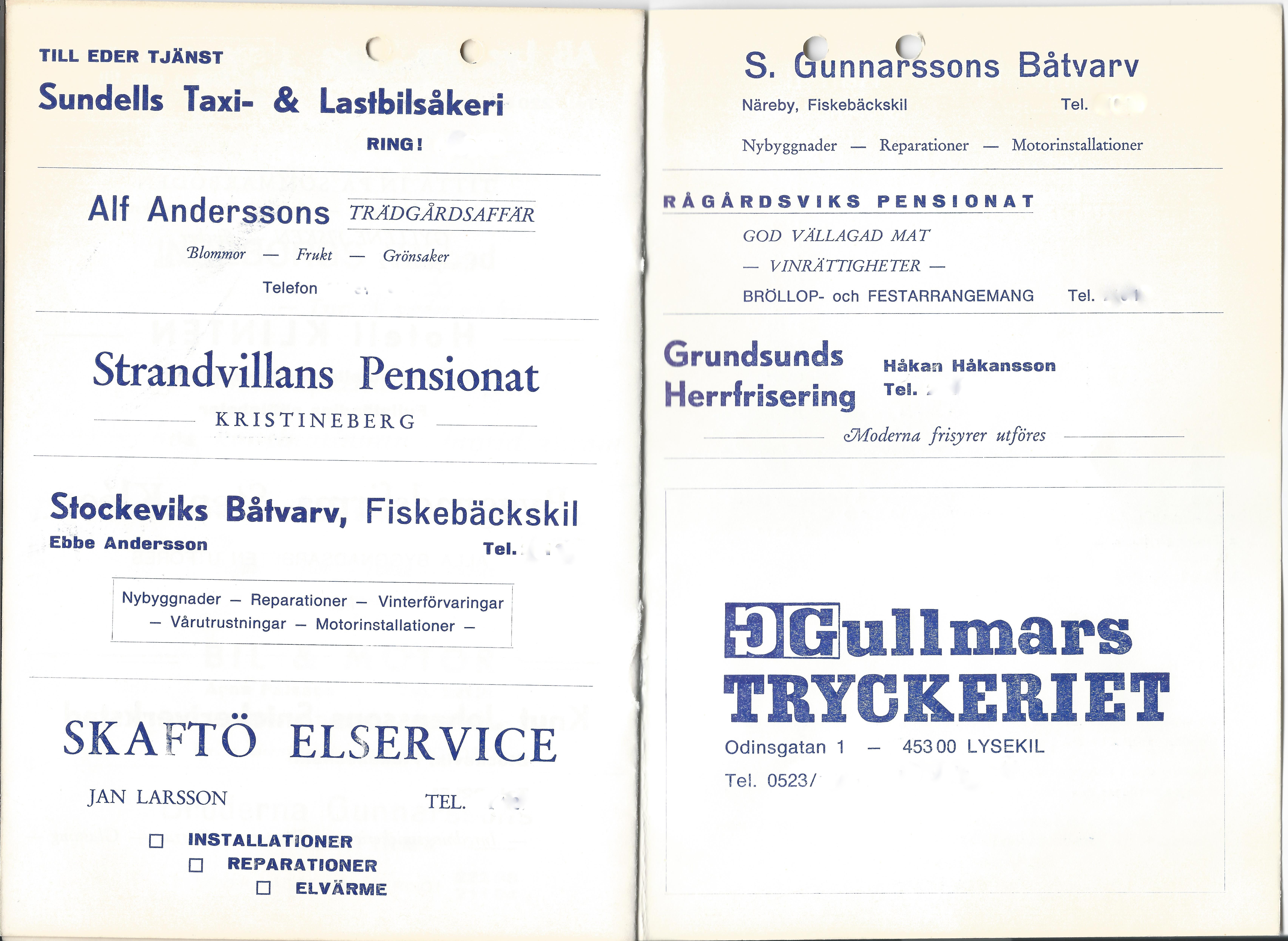 1970 märks det att allt blir mer påkostat. Det blir större program och mer som händer i programmet. Fantastiskt kul att se att det låg så många affärer i Fiskebäckskil och att de var med och sponsrade Bohusfestivalen och programhäftet.