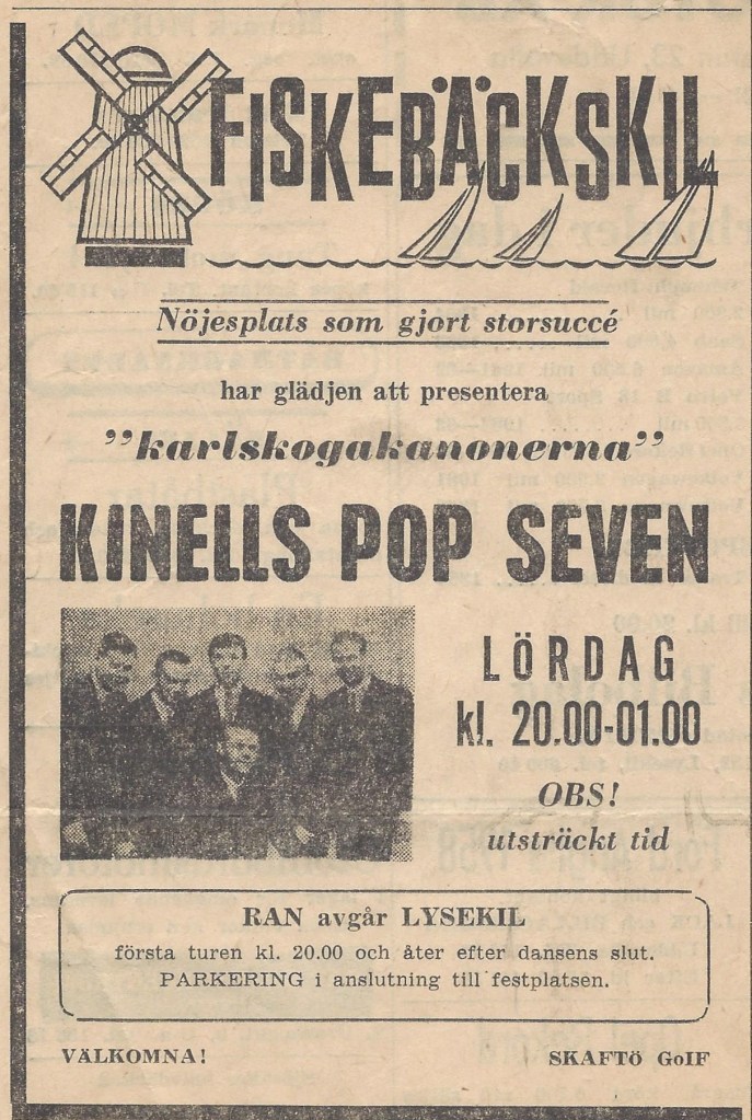 25 juni 1963. Hittar ett kontrakt skrivet med bandet Combo ett 5 mannaband och 230: – kostade de. Det var det här året Gösta Alexandersson började att boka artister och band till Fiskebäckskilsparken. Gösta berättar att Douglas Holmstedts orkester var ett av de första banden Gösta bokade.