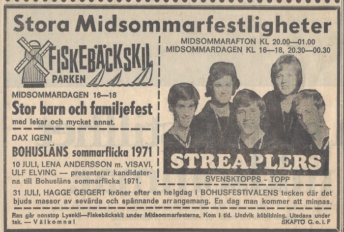 Streaplers spelade 20/6 och 21/6 i Fiskebäckskilsparken 20:30 till 01:00.