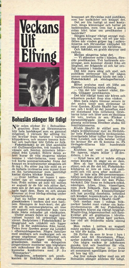Ulf Elfving var mycket här på västkusten under sin ungdom. Han skrev även för Allers en tid och skrev detta om Fiskebäckskil.