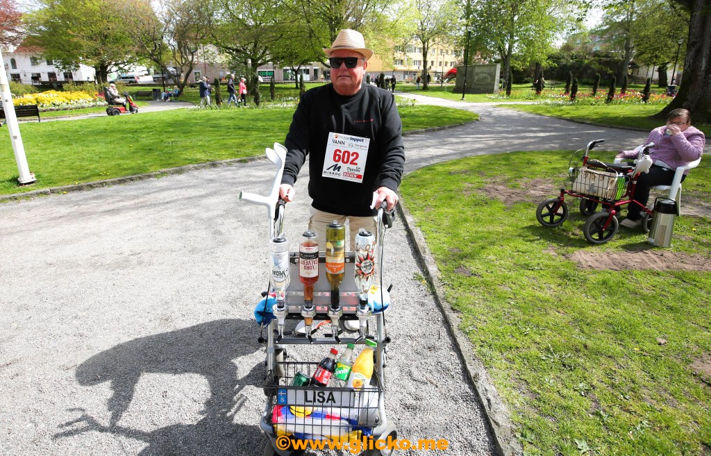 Lars ”Lisa” Wilhelmsson hade barskåpet med sig på rollatorrallyt. Han berättade att idag innehöll flaskorna bara vatten. Tanken här blev att rollatorrallyt blev lite som tidigare Lysekilskarnevalen som var igång mellan 1986-1984.