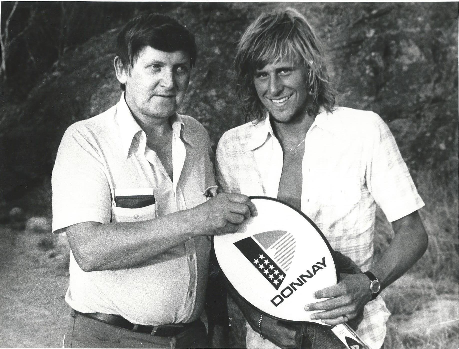 Ahlbin Gustafsson och Björn under prisutdelningen i Björn Borgs Pokal vid Fiskebäckskils tennisbannor.