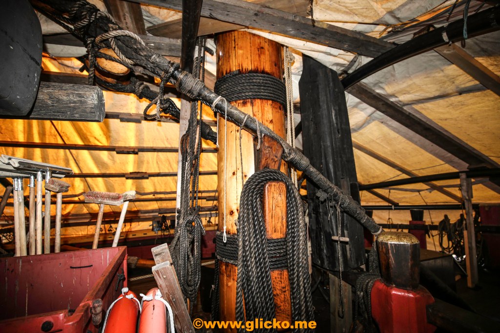 Marie-Louise berättar vidare att hela riggen består av naturfiber. Alla master är gjorda i fura och alla rep är gjorda av hampa.