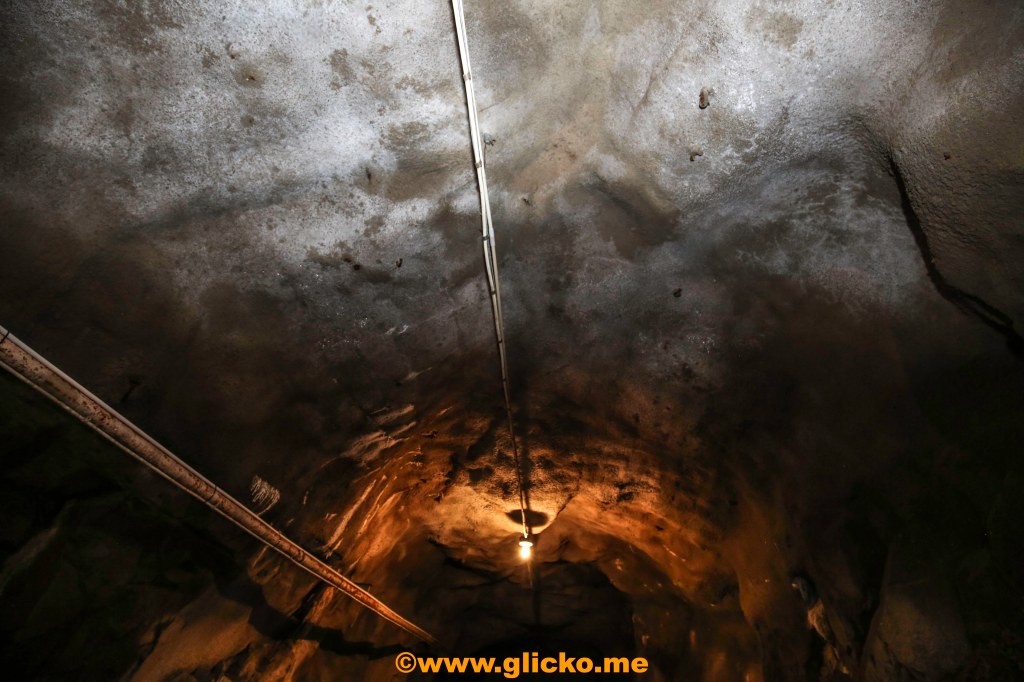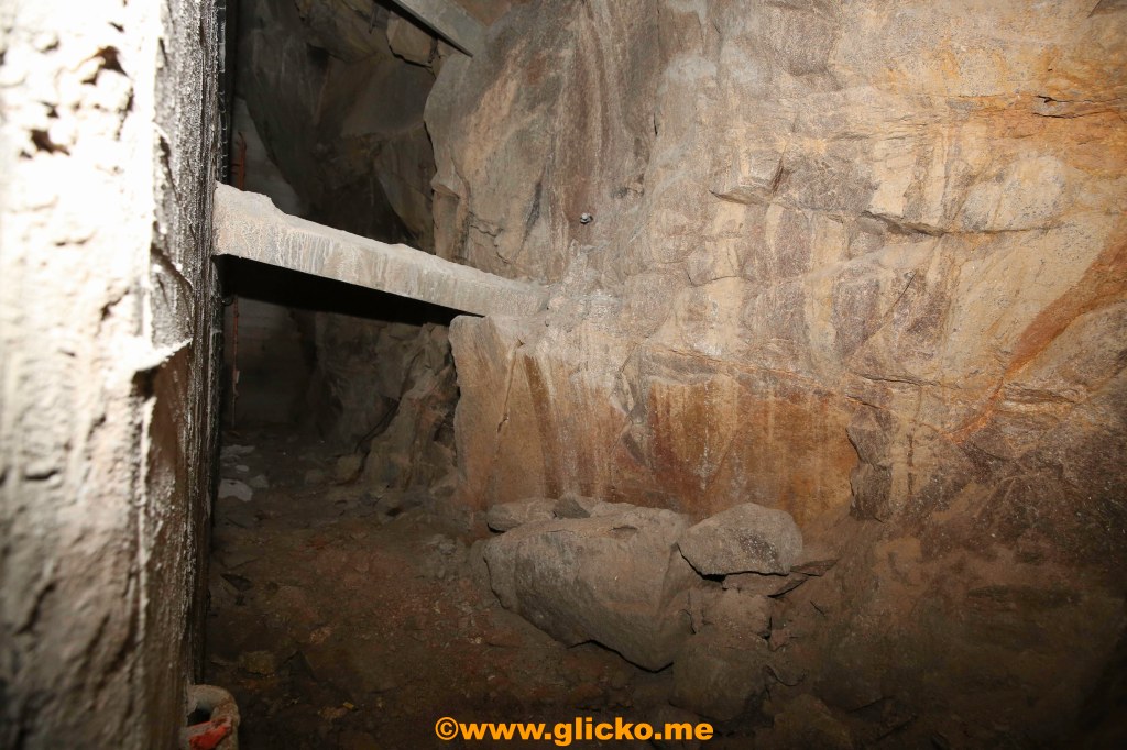 I själva huset eller i våningen så finns det en lucka på första våning som man kan öppna och titta ut i och då ser man väggarna och bergrummet samtidigt.